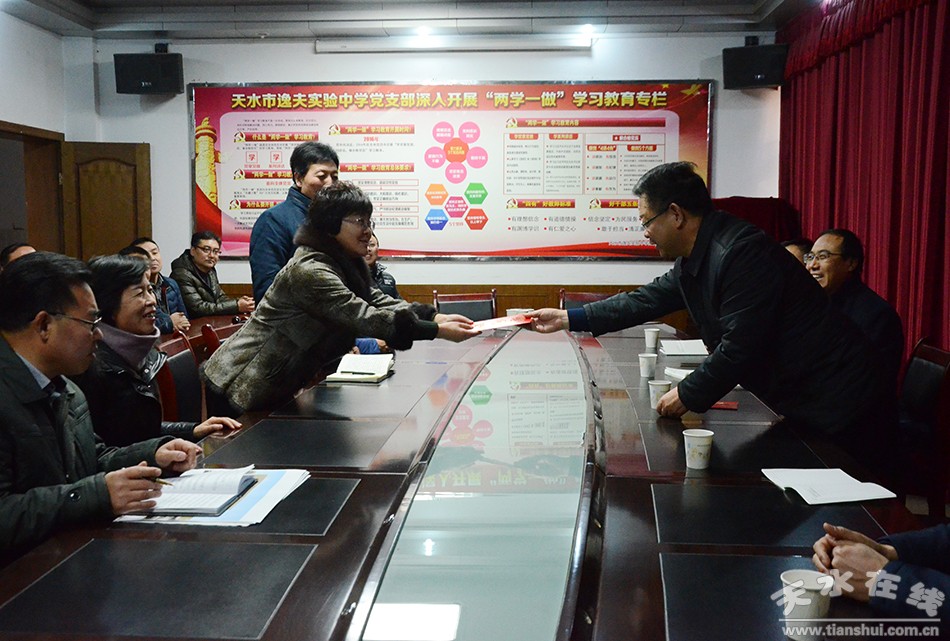 慰問中,張建杰代表市委、市政府向計衛(wèi)珍、楊尚義致以新春的祝福,對他們?yōu)槿薪逃聵I(yè)發(fā)展做出的貢獻(xiàn)表示感謝。他希望,計衛(wèi)珍、楊尚義等優(yōu)秀教師要發(fā)揮學(xué)術(shù)帶頭人的引領(lǐng)作用,繼續(xù)提高業(yè)務(wù)能力,不斷提升教學(xué)水平,爭取培養(yǎng)更多品學(xué)兼優(yōu)的學(xué)生,為推動我市教育事業(yè)發(fā)展做出新的更大的貢獻(xiàn)。他強(qiáng)調(diào),天水市逸夫?qū)嶒炛袑W(xué)作為全市示范性初中,要樹立全新的教育教學(xué)理念,用開放的眼光和思維辦學(xué),不斷提高教育教學(xué)質(zhì)量,走科學(xué)、卓越發(fā)展之路。要樹立以德為先的理念,加強(qiáng)校園管理,強(qiáng)化教學(xué)改革,激發(fā)師生潛能,全力打造教育品牌,努力把逸夫中學(xué)建設(shè)成隴原名校。