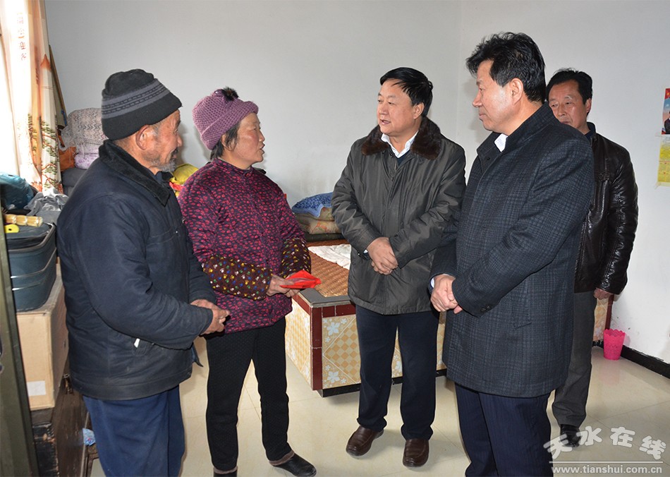 1月20日上午,天水市政協(xié)主席張明泰一行來到雙聯(lián)點秦州區(qū)娘娘壩鎮(zhèn)舒家壩村,看望慰問了兩個聯(lián)系戶,為他們送去新春的祝福與問候。
