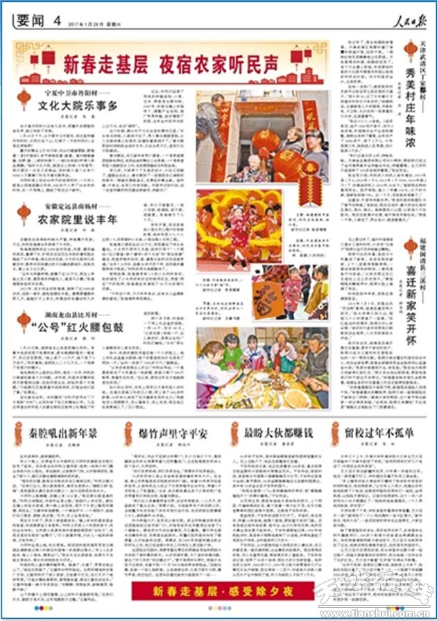 天水在線2月3日報道 《 人民日報 》( 2017年02月02日) 頭版頭條刊登了人民日報記者王錦濤采寫的《大坪村,變化大》的文章,同時,《 人民日報 》( 2017年01月28日)4 版刊登了人民日報記者王錦濤采寫的《秦腔吼出新年景》的文章,文中以記者春節(jié)返鄉(xiāng)所見所聞描寫了甘肅省天水市麥積區(qū)石佛鎮(zhèn)大坪村發(fā)生的巨大變化。該文經天水在線等本地媒體轉發(fā)后,引發(fā)天水網民強烈反響。一時間,正在過年曬年味的天水人的朋友圈卻被大坪村登上人民日報頭版頭條刷屏,大家紛紛為家鄉(xiāng)登上《 人民日報 》感到驕傲和自豪。為了讓大家以圖片的形式(有圖有真相)更進一步了解文中描寫的該村發(fā)生的巨大變化,天水在線記者于2月3日上午走進該村進行了采訪。請看圖片報道: