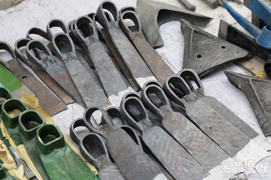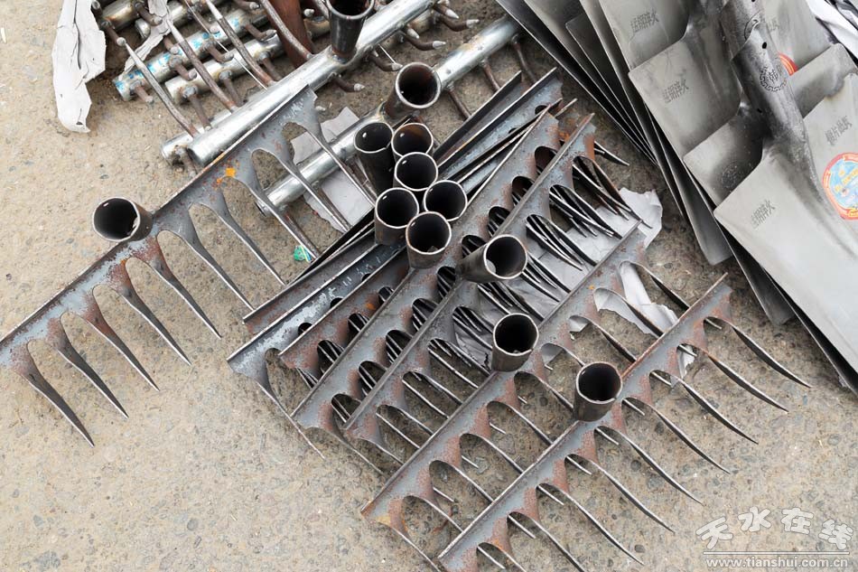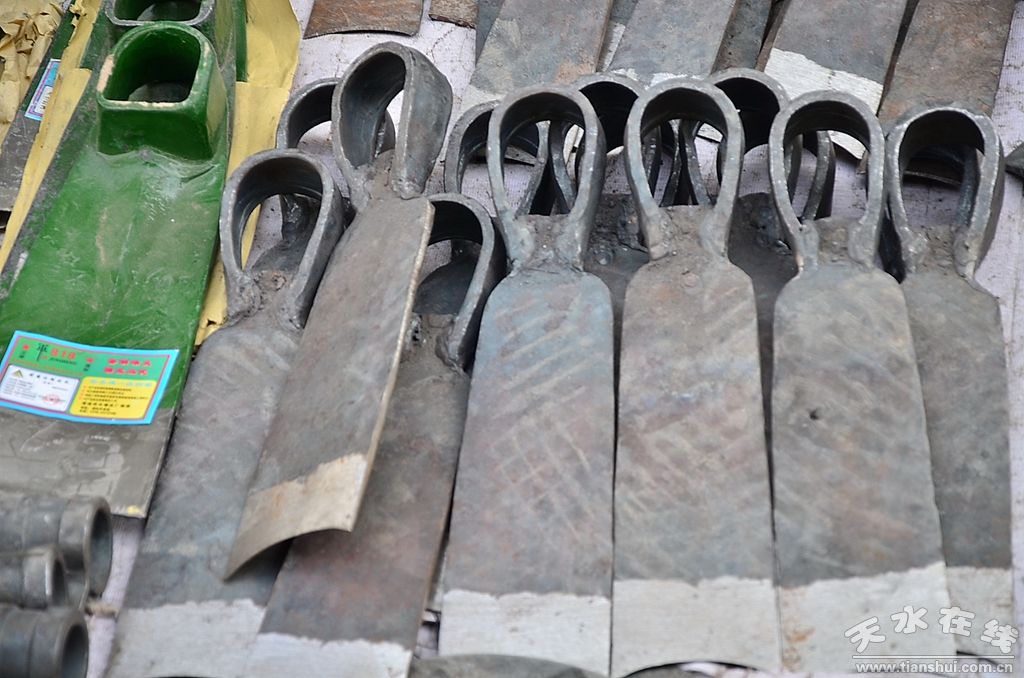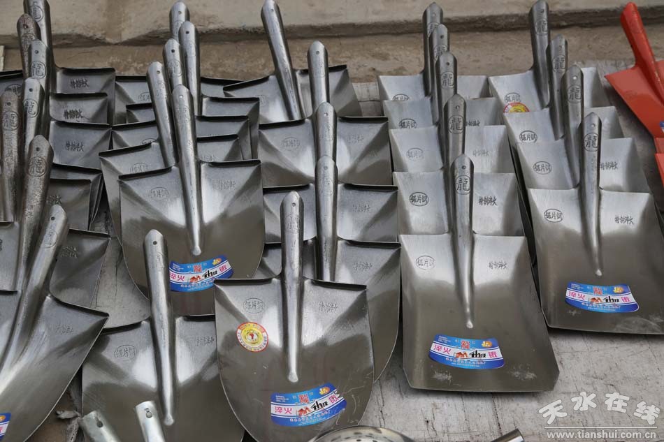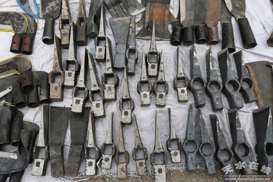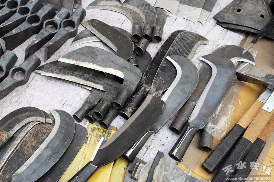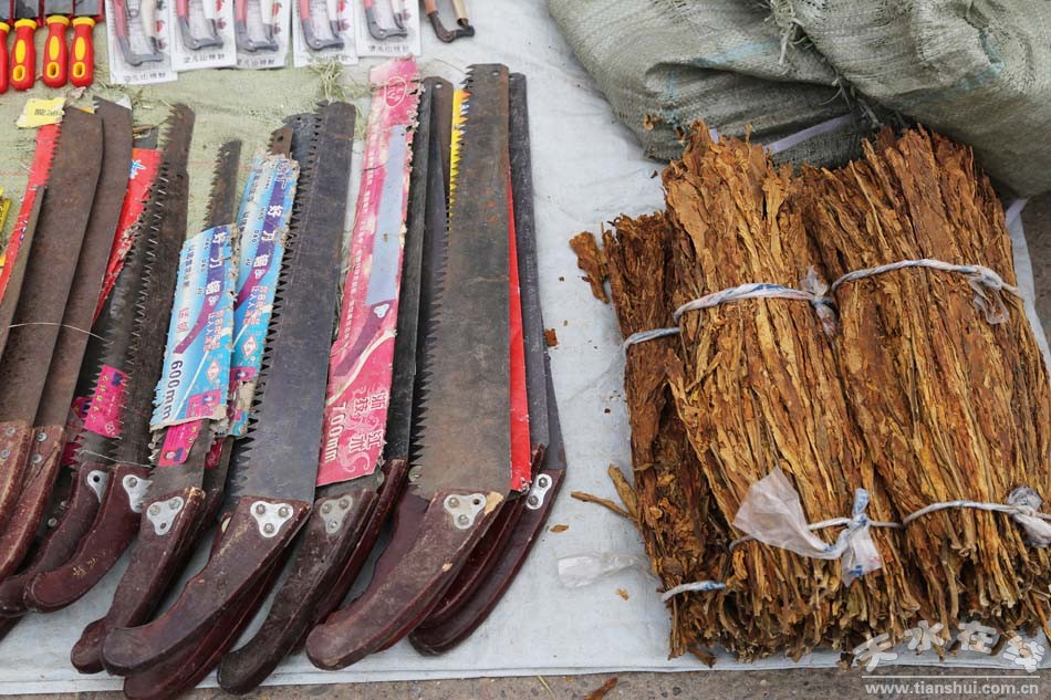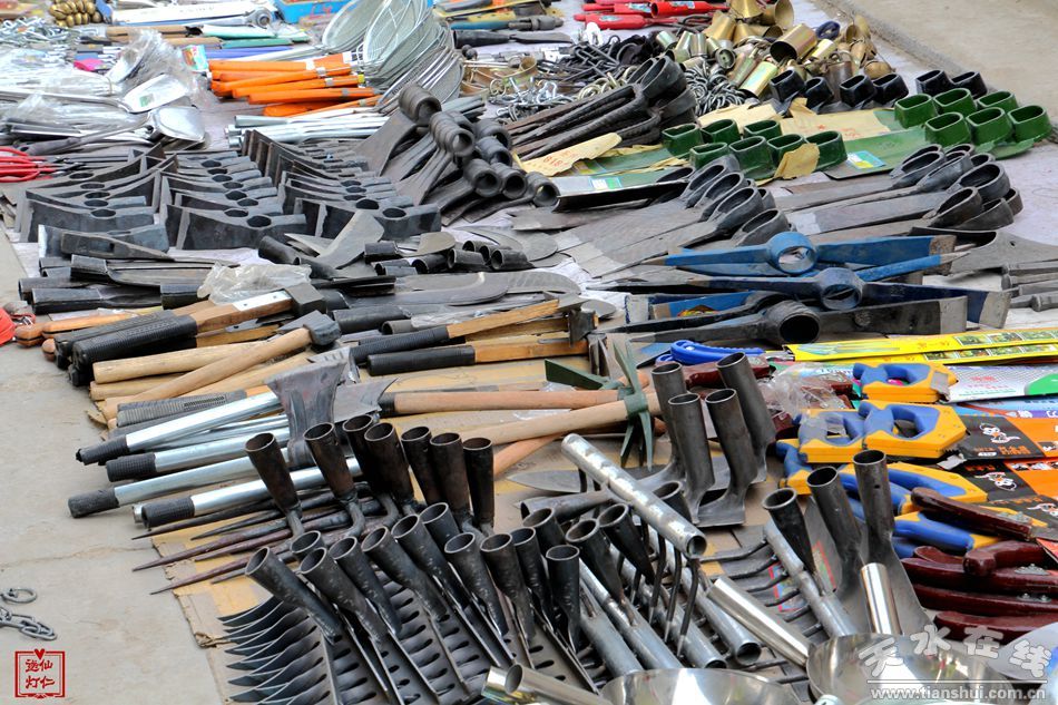 種類繁多的山貨市場可不只有這些編織類農(nóng)用物品,鐵制品在農(nóng)民生活中也是重頭戲。各式各樣的鋤頭、鐵鏟、鐮刀、草耙等整齊地?cái)[放在地上,從莊家前期除草、碎土,到后期種耕,再到最后收獲等,一系列種地過程中所需的工具齊聚一堂,任由挑選。看見這些工具仿佛看見了一望無際的田地,在暖陽中只待農(nóng)民伯伯悉心呵護(hù)。