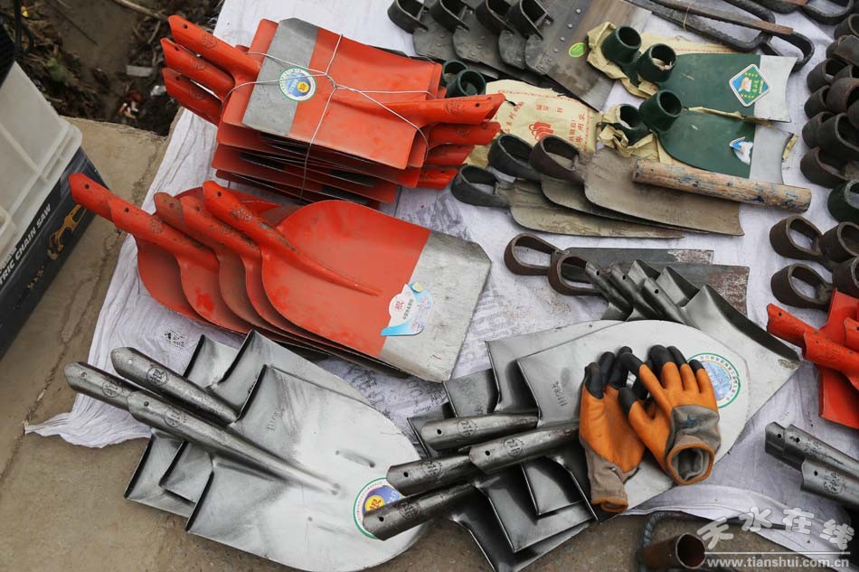 (村民在挑選春耕用具)