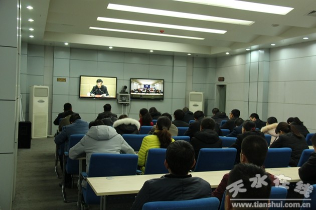 共青團(tuán)天水市委按照團(tuán)省委的要求,在中國電信股份有限公司天水分公司電視電話會議室設(shè)分會場。共青團(tuán)天水市委機(jī)關(guān)全體干部、全市各縣(區(qū))團(tuán)委負(fù)責(zé)同志、直屬團(tuán)組織負(fù)責(zé)同志等60余人在天水分會場收看收聽了會議。