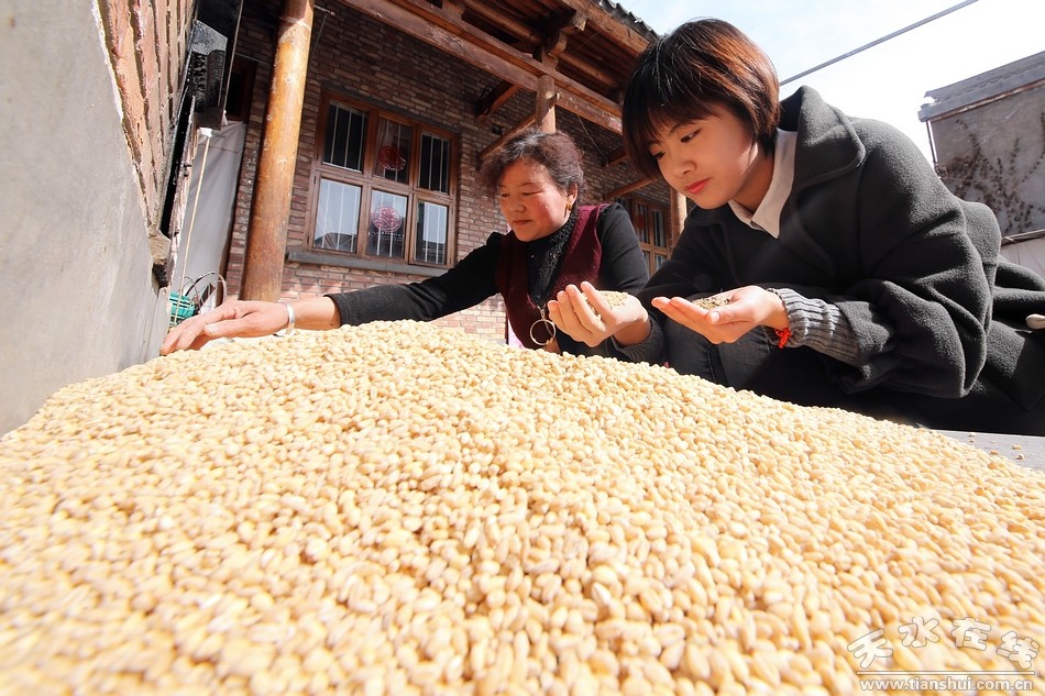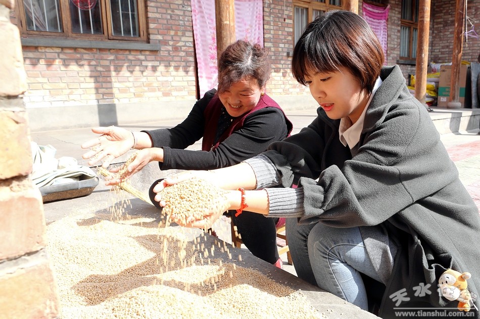 還不到晌午,太陽就已經(jīng)曬得人抬不起頭。走進(jìn)蘇安福家的小院,只見莜麥和小麥在地上鋪了一層淺黃,春草探出腦袋搖擺著夾道歡迎,春日將暖陽作為周末的禮物,送給這里正在辛勞工作的人們。“來得正是時候,我正準(zhǔn)備做小麥甜醅哩!”女主人張雙銀剛剛將六七十斤的小麥從屋子里提出來,一見到客人,她就熱情地吆喝我們跟她去房頂上給小麥剝皮。