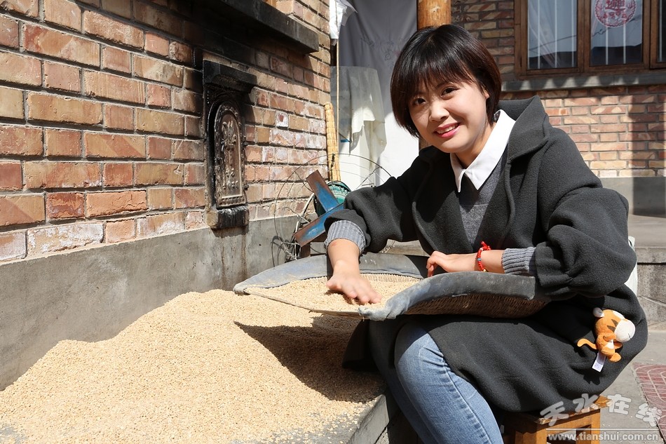 午后的微風(fēng)吹的人格外愜意,淡淡的酒香味氤氳滿院,聞得小編舌根生津!皝韥韥!嘗嘗我前兩天做的甜醅……”原來是蘇安福夫婦三天前釀制的甜醅快要出壇了。張雙銀小心翼翼的揭開蓋在盆上的棉被,拿筷子攪動著甜醅,一陣陣醇膩的清香撲鼻而來。湊近一看,盆里的麥仁飽滿結(jié)實,顆粒分明,煞是迷人。送幾粒到嘴里,好像甘甜的漿汁在舌尖流動,一口咬下去,芬芳耐嚼,綿綿掛齒。