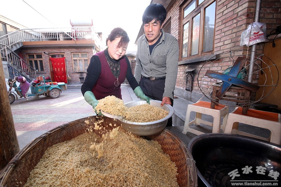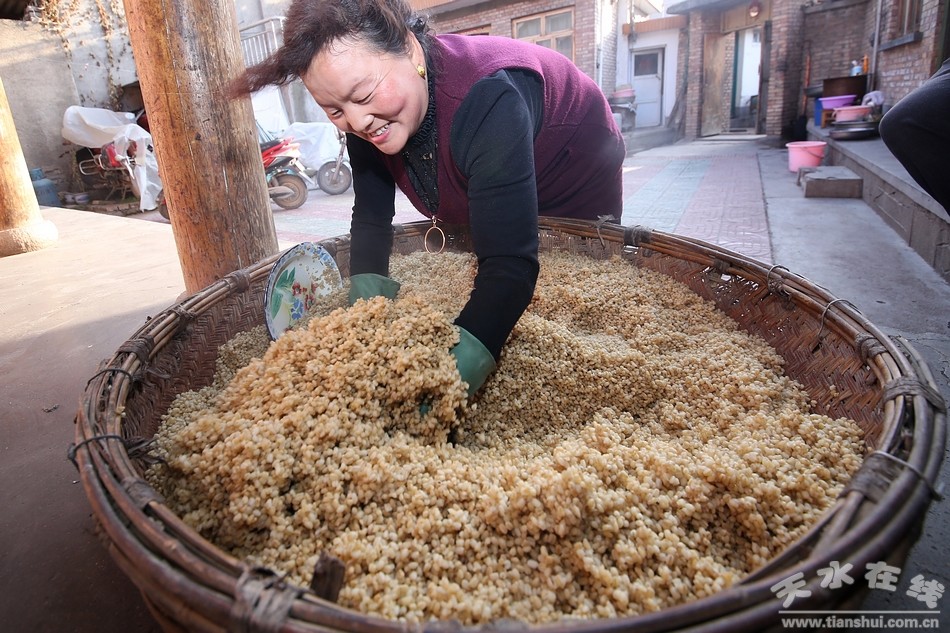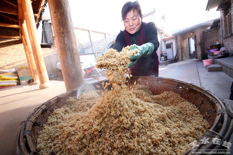 天水的甜食種類雜多,花樣百出,這里面要數(shù)甜醅最受人歡迎。據(jù)說,從唐代開始,甜醅就是西北人居家食用和招待賓客的美味,并且一直沿襲至今,香甜了一千多年。在天水,都說麥積區(qū)石佛鎮(zhèn)的甜醅最有名,2月24日,天水在線走進(jìn)麥積區(qū)石佛鎮(zhèn)中石村,探訪這份舌尖上的甜蜜。