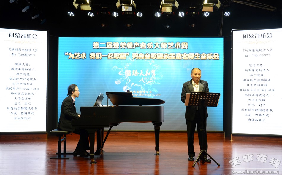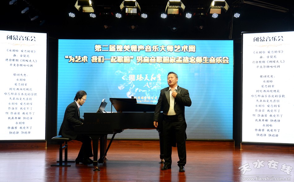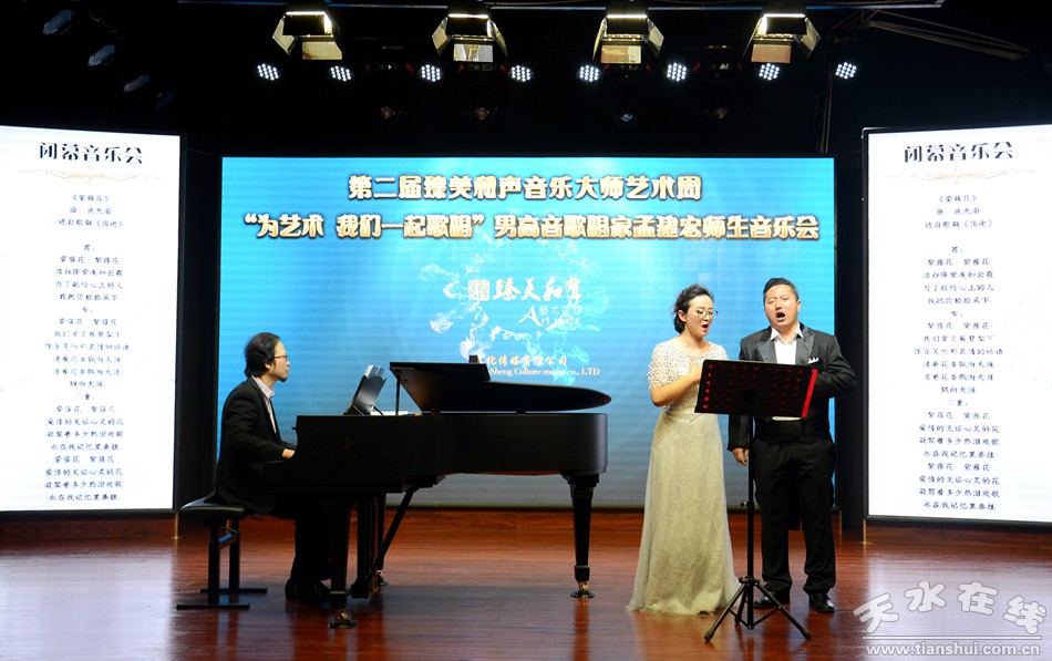 3月26日晚,第二屆臻美和聲音樂大師藝術(shù)周舉行“為藝術(shù),我們一起歌唱”男高音歌唱家孟建宏師生音樂會。天水市委宣傳部常務(wù)副部長王小熊及天水市音樂藝術(shù)院團(tuán)、學(xué)校和聲樂愛好者近200人共聚一堂,聆聽了孟建宏師生如同天籟的優(yōu)美歌聲。