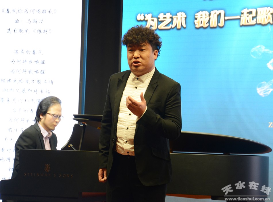 據(jù)悉,由甘肅臻美和聲文化傳媒有限公司主辦的第二屆臻美和聲音樂大師藝術(shù)周從3月24開幕,共歷時4天。此次活動邀請到了新西蘭國家歌劇院男高音青年歌唱家孟建宏大師蒞臨天水,給天水市音樂藝術(shù)院團(tuán)、學(xué)校的專業(yè)人士和廣大音樂愛好者傳授演唱技巧和經(jīng)驗。