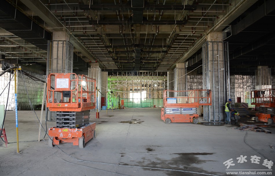 。〞(huì)前,楊維俊一行來到天水商貿(mào)城會(huì)展中心和廣場等有關(guān)項(xiàng)目建設(shè)工地,就項(xiàng)目建設(shè)、裝修進(jìn)展情況及相關(guān)基礎(chǔ)設(shè)備配套建設(shè)工作進(jìn)行了詳細(xì)察看了解。)