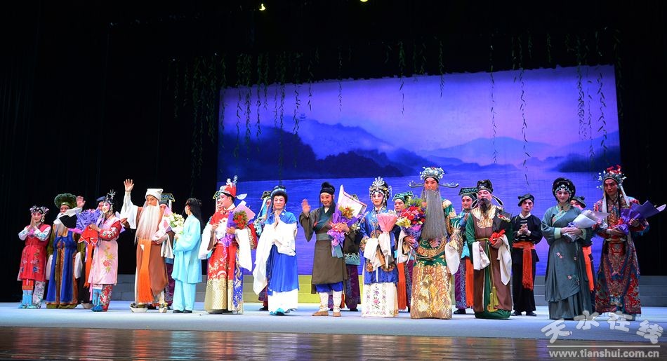 (演出結(jié)束后,天水市委常委、宣傳部長(zhǎng)蒲軍接見(jiàn)全體演職人員。)