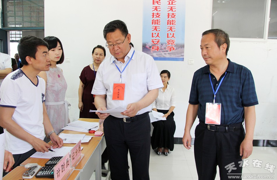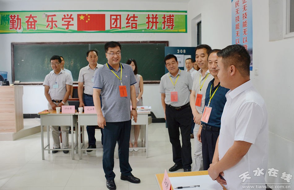 6月23日,天水市2017年從優(yōu)秀村干部中考試錄用鄉(xiāng)村機關公務員面試工作在市技工學校舉行。市委常委、組織部長王正茂巡視考場。