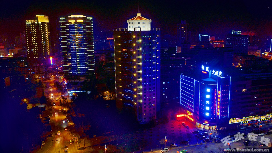 (天水西關(guān)夜景 天水在線無人機(jī)2016年2月4日晚航拍)
