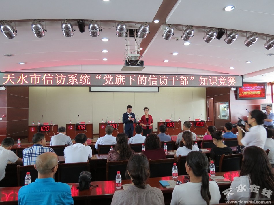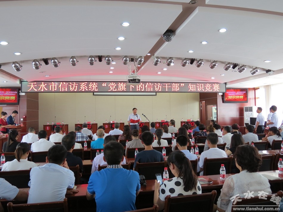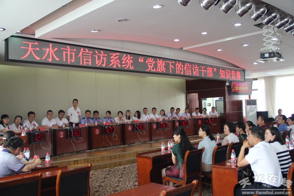 6月29日,天水市信訪局舉辦了全市信訪系統(tǒng)“黨旗下的信訪干部”知識(shí)競(jìng)賽,慶祝建黨96周年,迎接黨的十九大勝利召開(kāi),回顧黨的光輝歷程,謳歌黨的豐功偉績(jī),抒發(fā)信訪干部對(duì)黨的崇敬之情。市公安局、市住建局、市國(guó)土局、市衛(wèi)計(jì)委、市司法局、市民政局、市信訪局和縣區(qū)信訪局共計(jì)14支代表隊(duì)42名隊(duì)員參加競(jìng)賽。天水市紀(jì)委第四綜合派駐紀(jì)檢組組長(zhǎng)尚建強(qiáng)、副組長(zhǎng)李瑾,市直機(jī)關(guān)工委紀(jì)工委書記王亞梅,市住建局黨委副書記張?zhí)鞂毶W臨賽場(chǎng)指導(dǎo),秦州區(qū)70多名社區(qū)黨員干部應(yīng)邀觀看比賽。