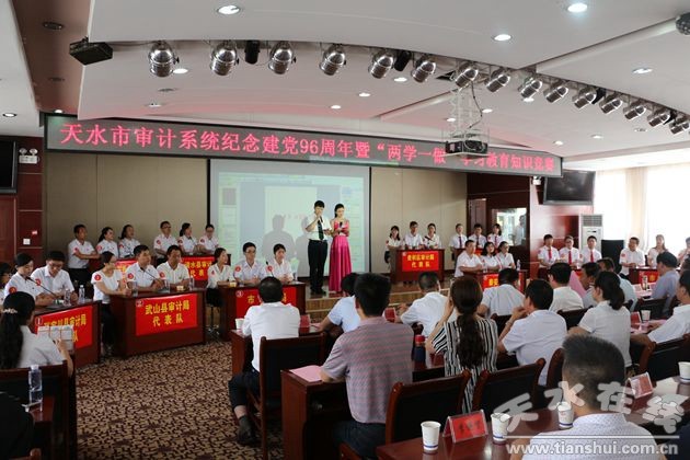 在中國(guó)共產(chǎn)黨建黨96周年來(lái)臨之際,天水市審計(jì)局舉辦了天水市審計(jì)系統(tǒng)紀(jì)念中國(guó)共產(chǎn)黨成立96周年“黨紀(jì)黨規(guī)印我心”暨“兩學(xué)一做”學(xué)習(xí)教育知識(shí)競(jìng)賽活動(dòng);顒(dòng)旨在回顧黨的奮斗歷史,謳歌黨的光輝業(yè)績(jī),繼承和發(fā)揚(yáng)黨的光榮傳統(tǒng)和優(yōu)良作風(fēng),進(jìn)一步激發(fā)干部職工愛(ài)黨、憂黨、興黨、護(hù)黨的決心。本次知識(shí)競(jìng)賽共有市局機(jī)關(guān)代表隊(duì)、市經(jīng)責(zé)辦代表隊(duì)等10個(gè)代表隊(duì)參加,市委組織部、市直機(jī)關(guān)工委、市紀(jì)委第四綜合派駐組領(lǐng)導(dǎo)受邀觀看指導(dǎo)比賽。