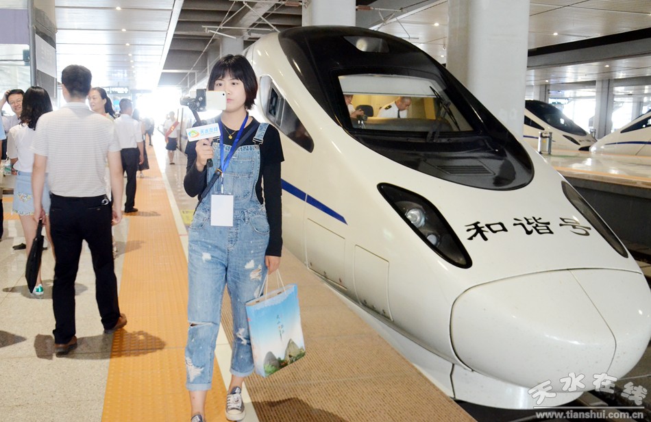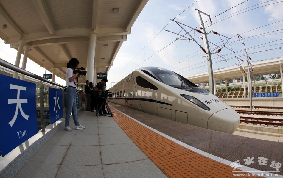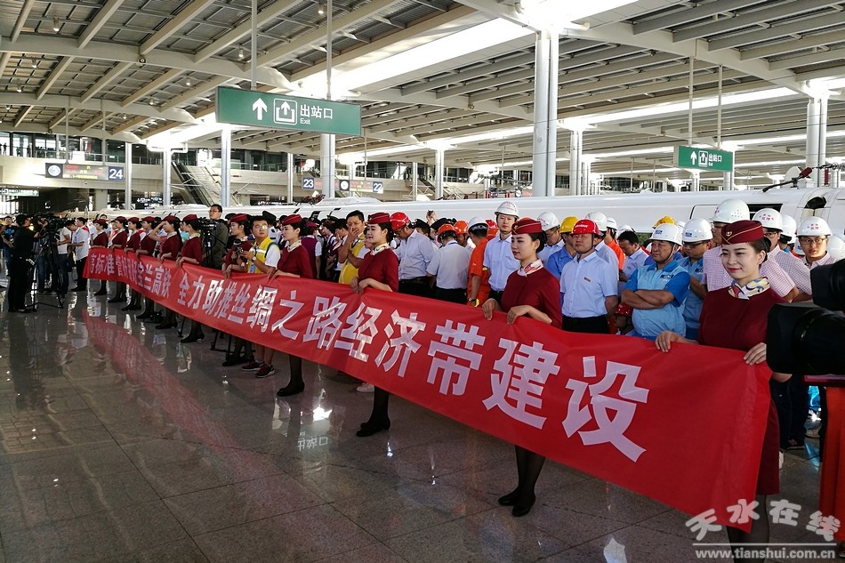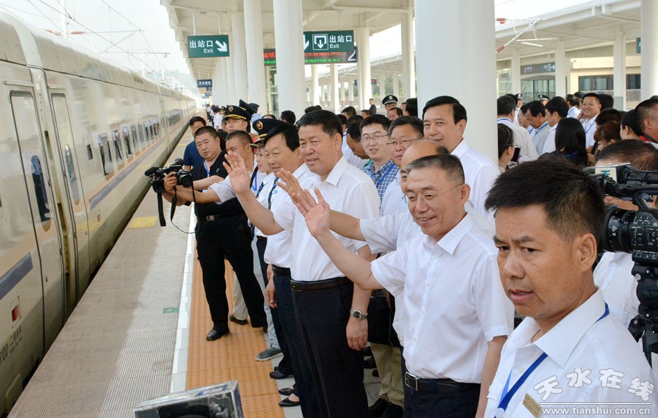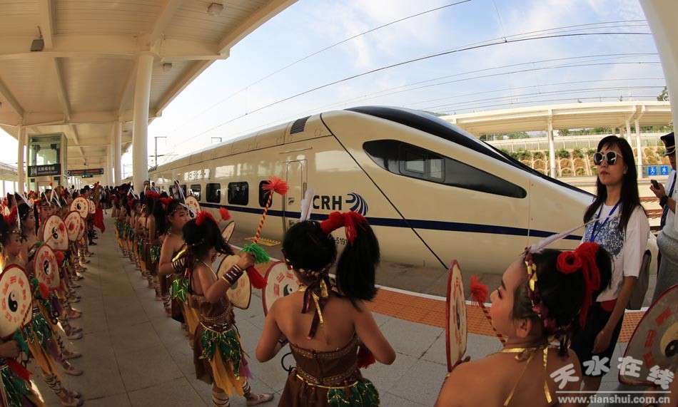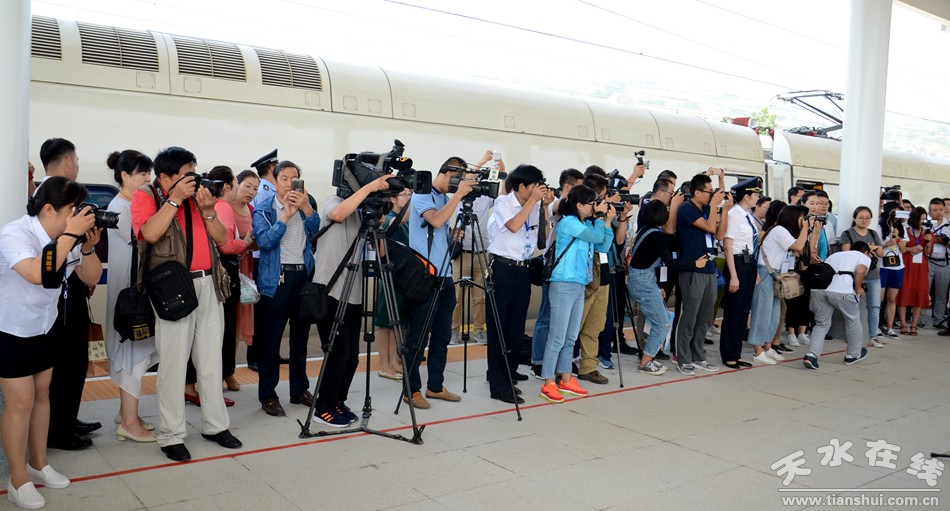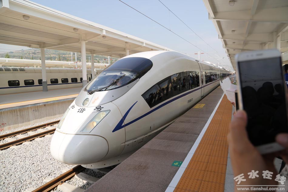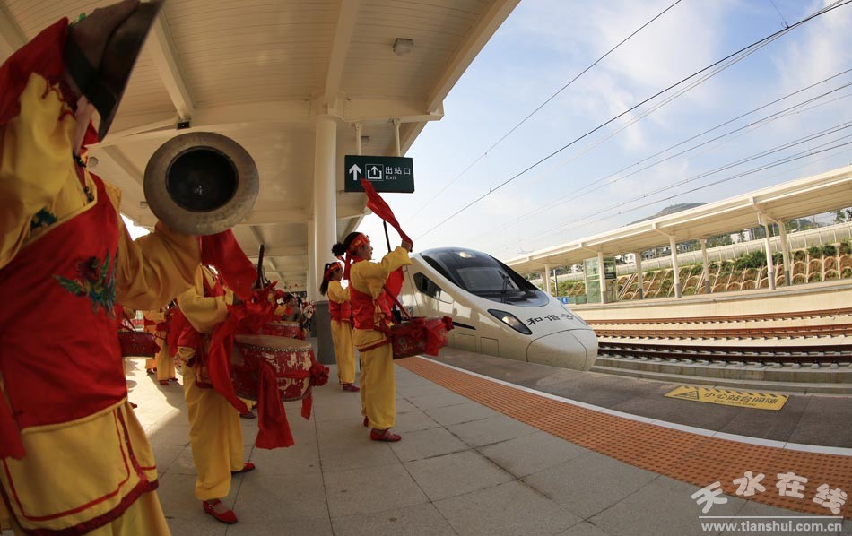 (寶蘭高鐵天水南開往蘭州西的“天水號(hào)”動(dòng)車首發(fā)儀式現(xiàn)場(chǎng))