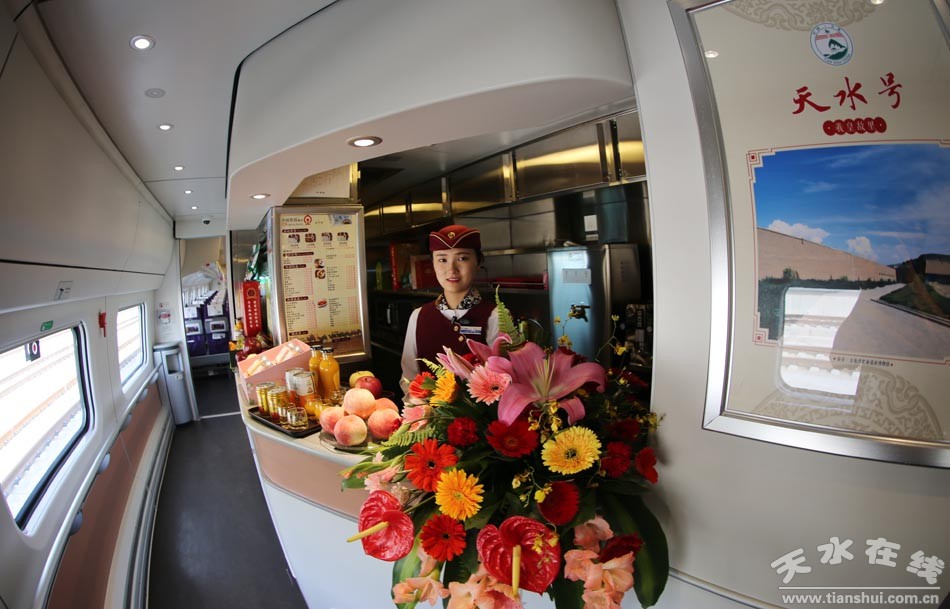 (圖為“天水號(hào)”動(dòng)車餐車)