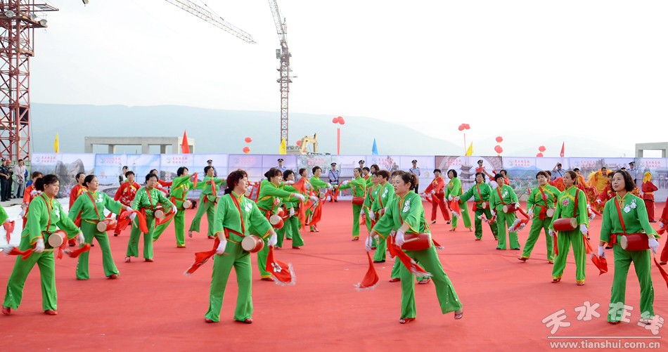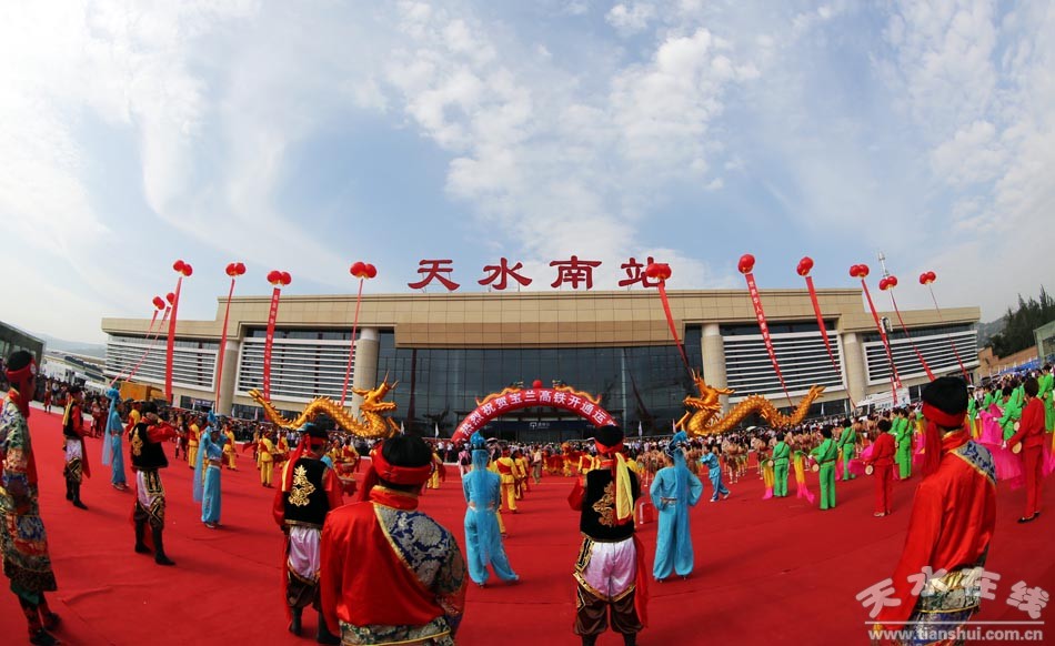 (天水南站站前廣場(chǎng)載歌載舞慶賀寶蘭高鐵正式開通。)