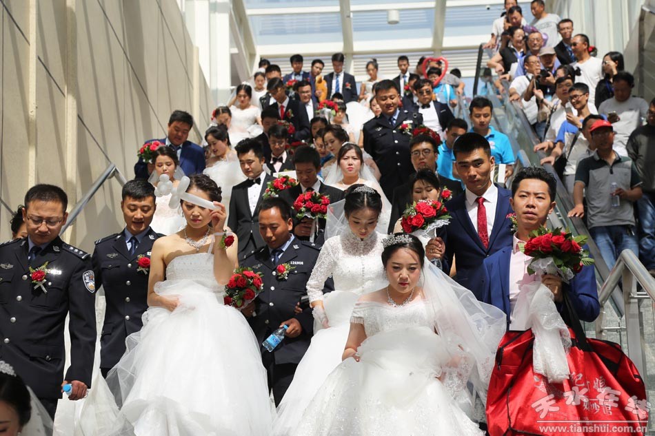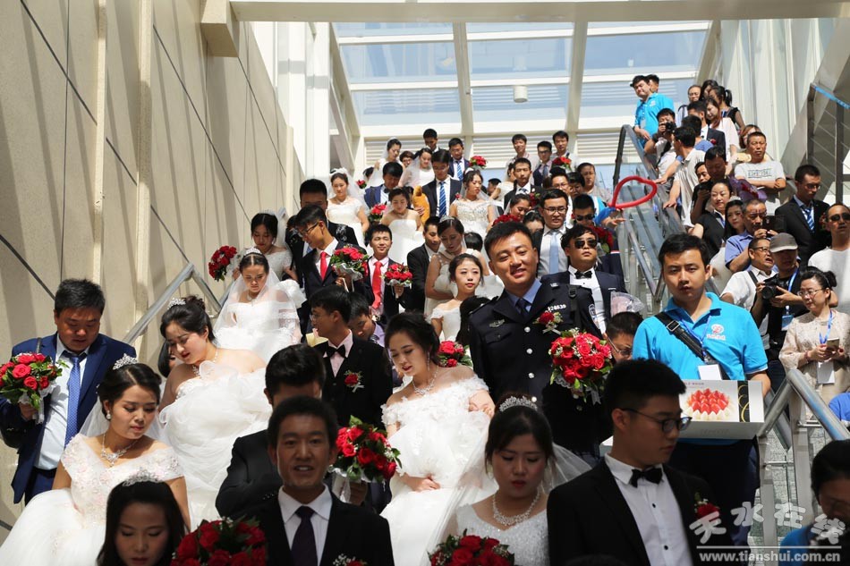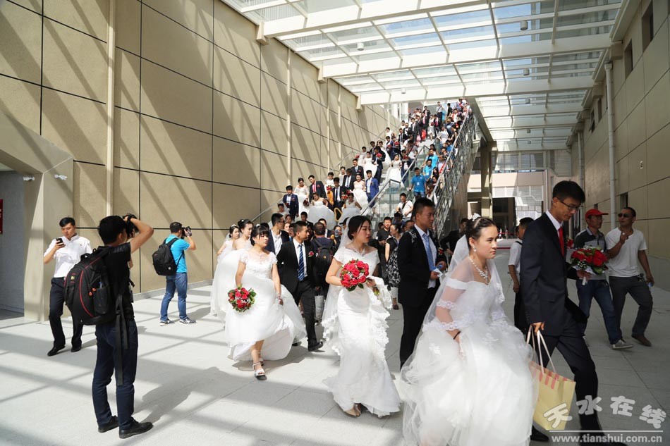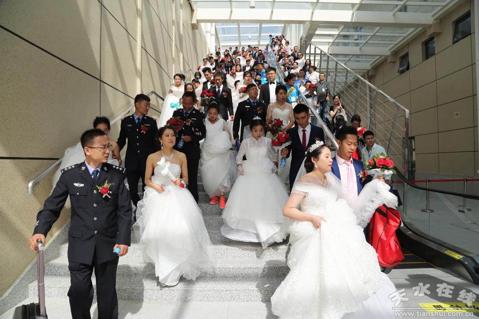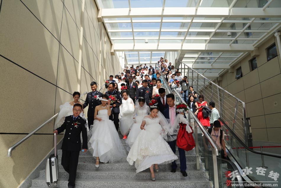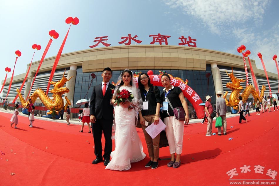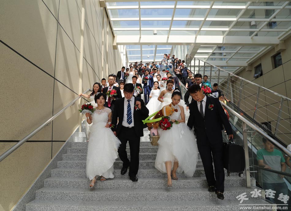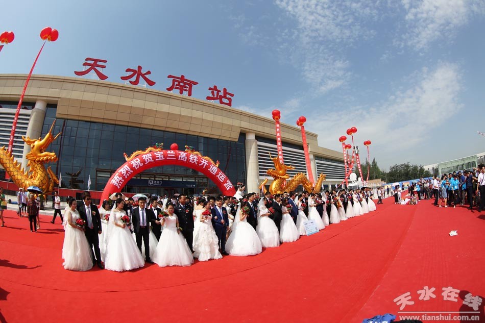 (應(yīng)天水在線邀請,在天水在線的組織下,百對新人在天水南站合影留念。) |
