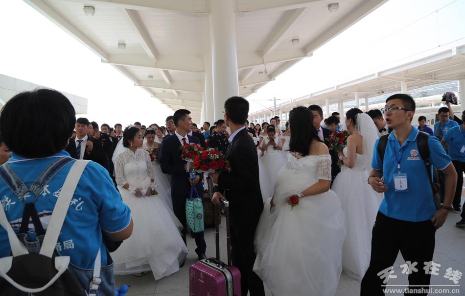 (百對新人抵達(dá)天水南站)