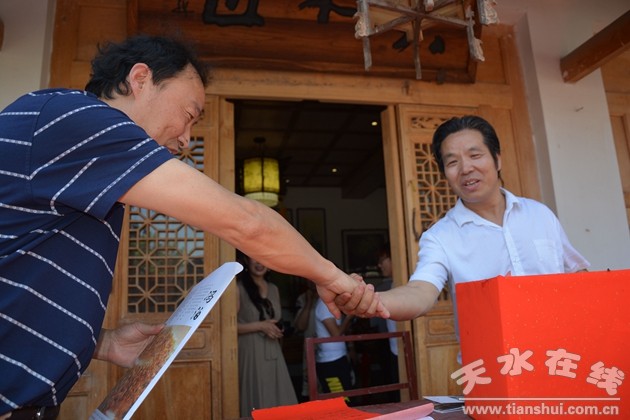 7月9日上午,馮泊美術(shù)館正式開館。天水市政協(xié)原副主席宋博華、中共天水市委原副秘書長王映泰為馮泊美術(shù)館揭牌,田芳、謝蛟、汪洋、王碩、王斌、肖敏、杜未、謝勤定等諸多文化名流參加了開館儀式。