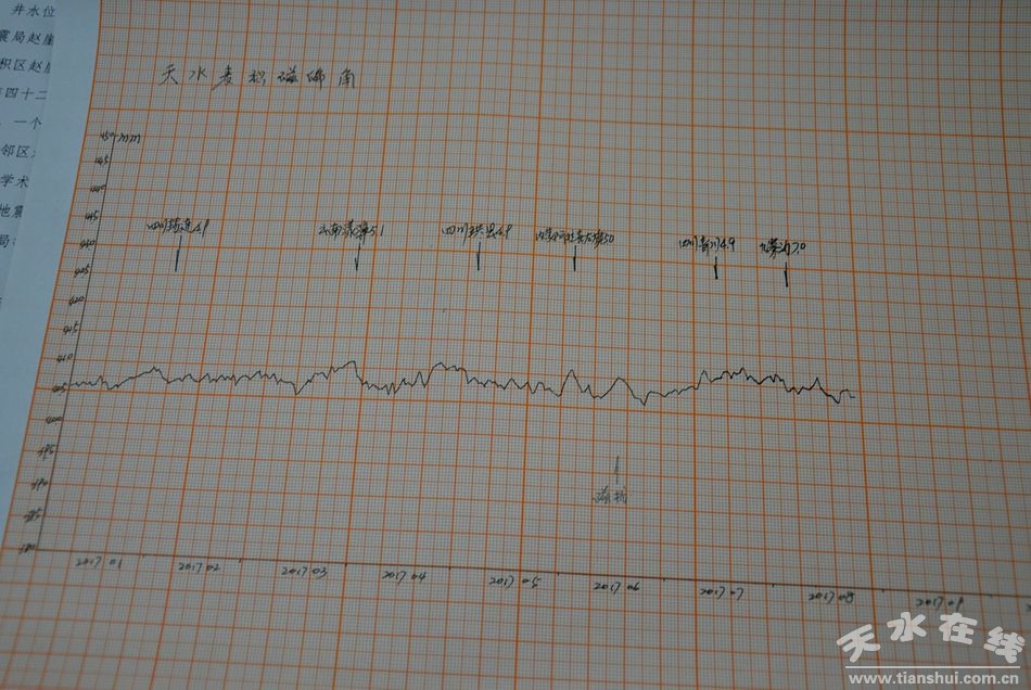 從那時起,無論風(fēng)霜雨雪,王建榮都堅持在每天的8時、14時、20時三個時間段進(jìn)行觀測,必要時還得加密觀測。同時,他還自費收集天水及鄰近地區(qū)30多個臺站的地下流體資料,結(jié)合磁偏角數(shù)據(jù),在坐標(biāo)紙上點繪,然后進(jìn)行綜合研究,形成震情分析報告。這些原本需要大量人力物力財力的工作,王建榮一干就是23年。