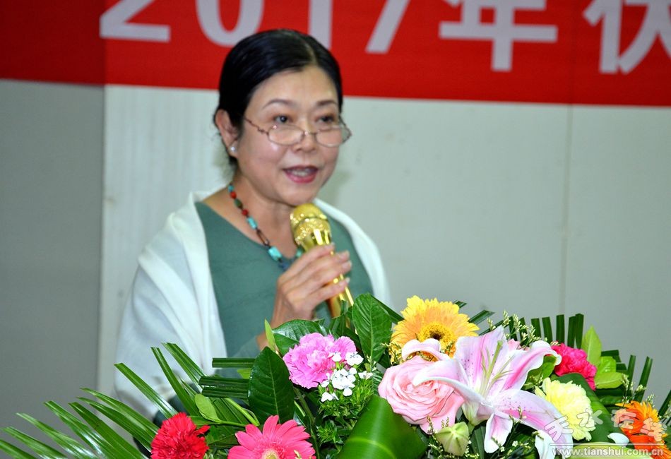 (新當(dāng)選的天水伏羲琴社社長(zhǎng)胡寶琴作表態(tài)發(fā)言)