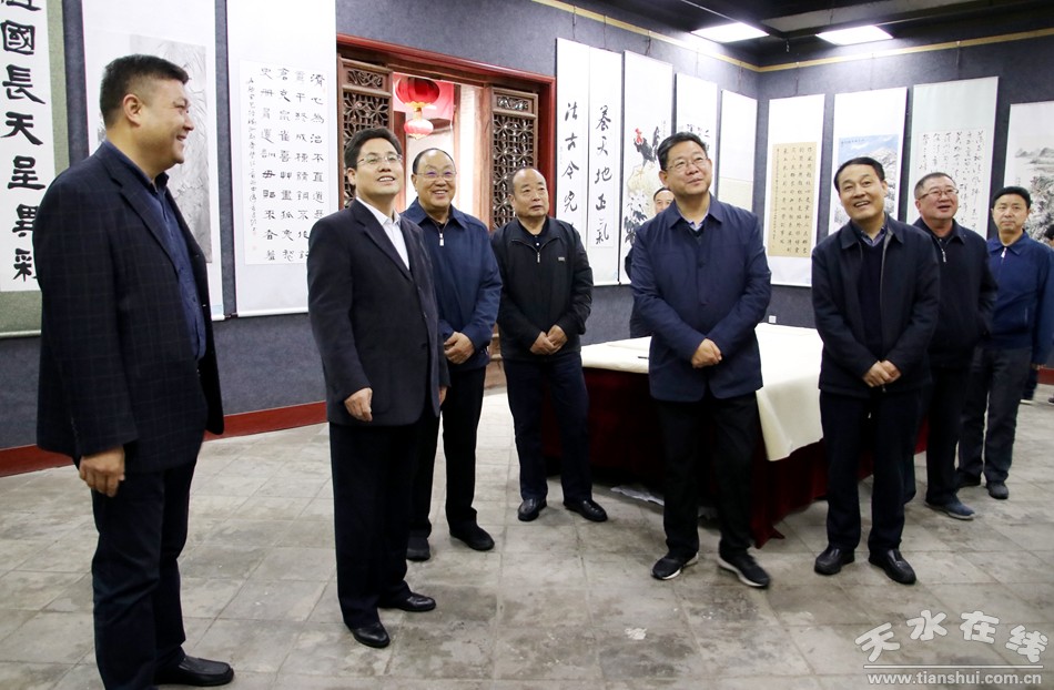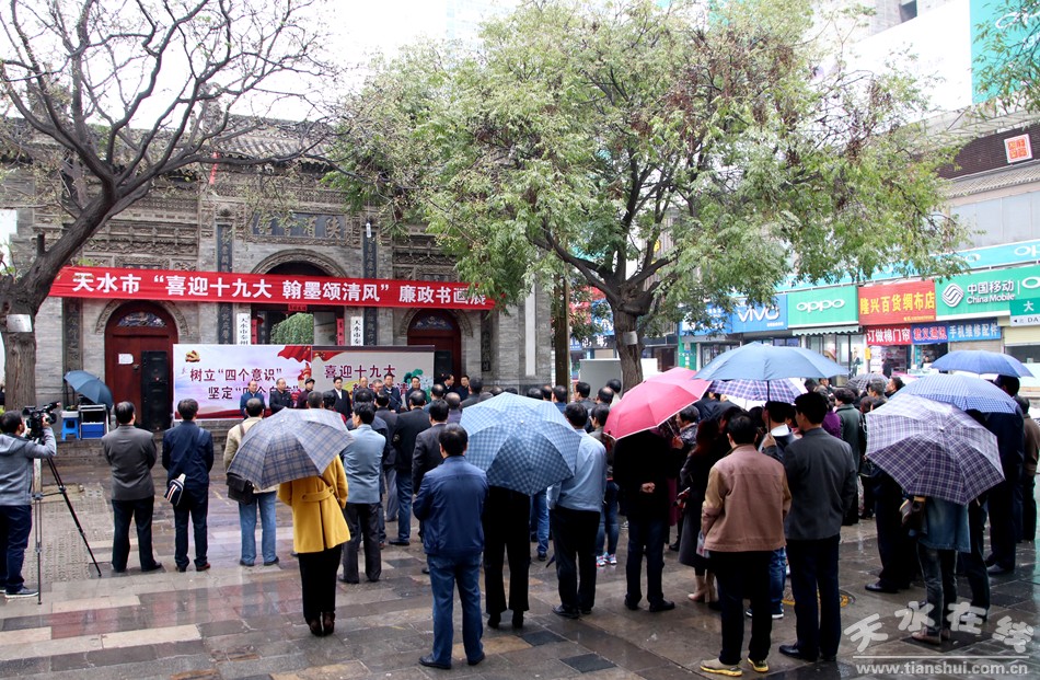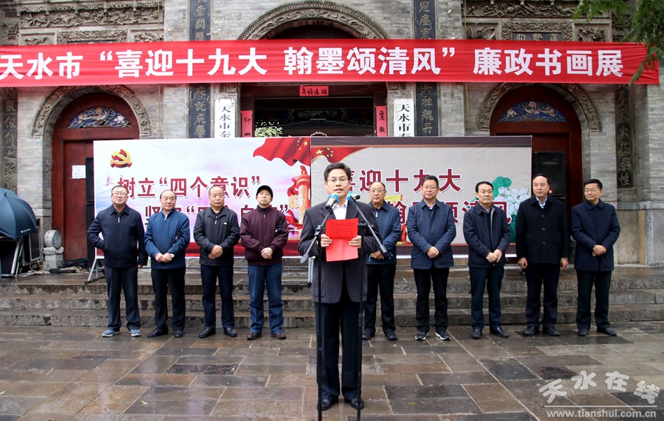 10月13日,由天水市紀(jì)委、市監(jiān)察局主辦,市文聯(lián)協(xié)辦的“喜迎十九大 翰墨頌清風(fēng)”廉政書畫展在陜省會館開展。市領(lǐng)導(dǎo)王國先、張克強、張建杰、郭明興,市人大常委會秘書長楊坤出席開展儀式并參觀展覽。