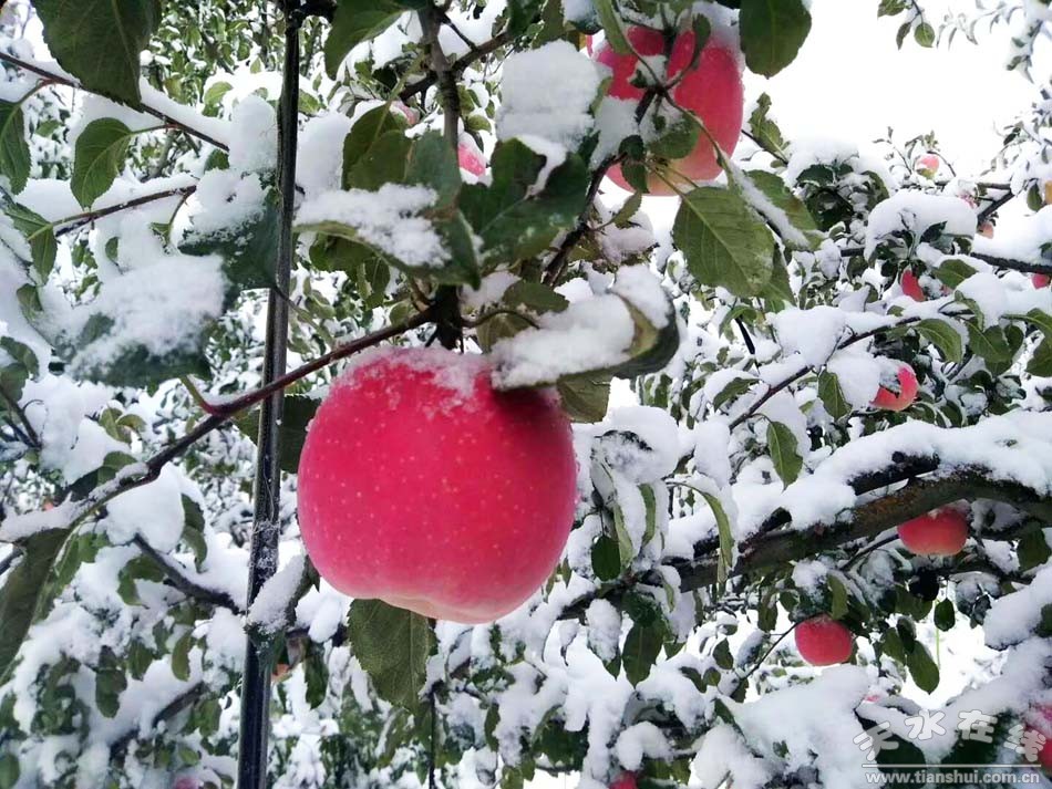 10月9日夜間,天水出現(xiàn)今年后半年首場(chǎng)降雪天氣。全市除秦州區(qū)和麥積區(qū)城區(qū)外,各縣區(qū)均出現(xiàn)雨夾雪,海拔1500米以上山區(qū)出現(xiàn)積雪,過(guò)程降溫達(dá)到8~10℃,很多果園都被白雪覆蓋,因此也誕生了可遇不可求的雪蘋(píng)果,瞬間刷爆了朋友圈,小編也帶你一起去看看傳說(shuō)中的 “雪蘋(píng)果”。