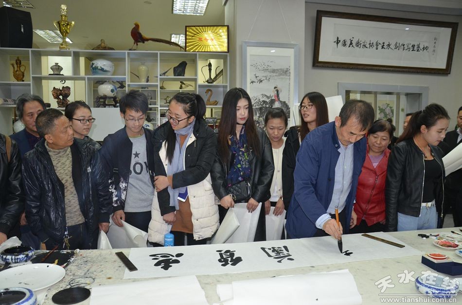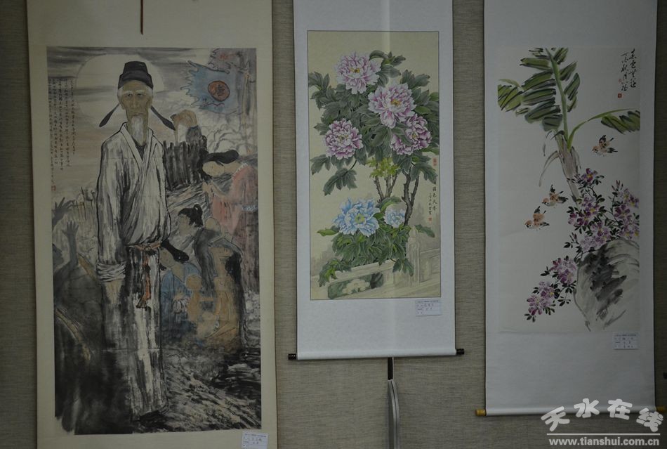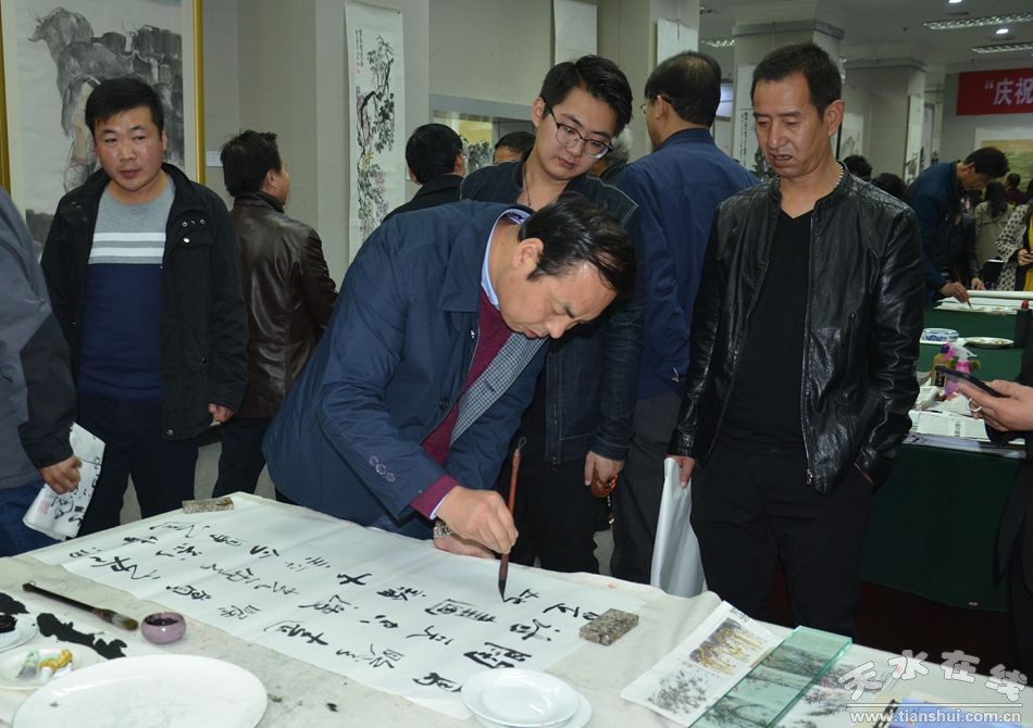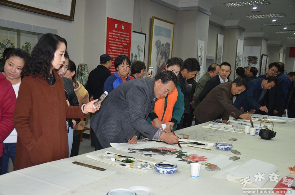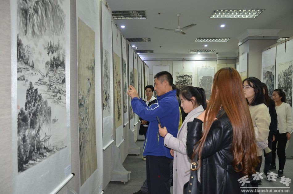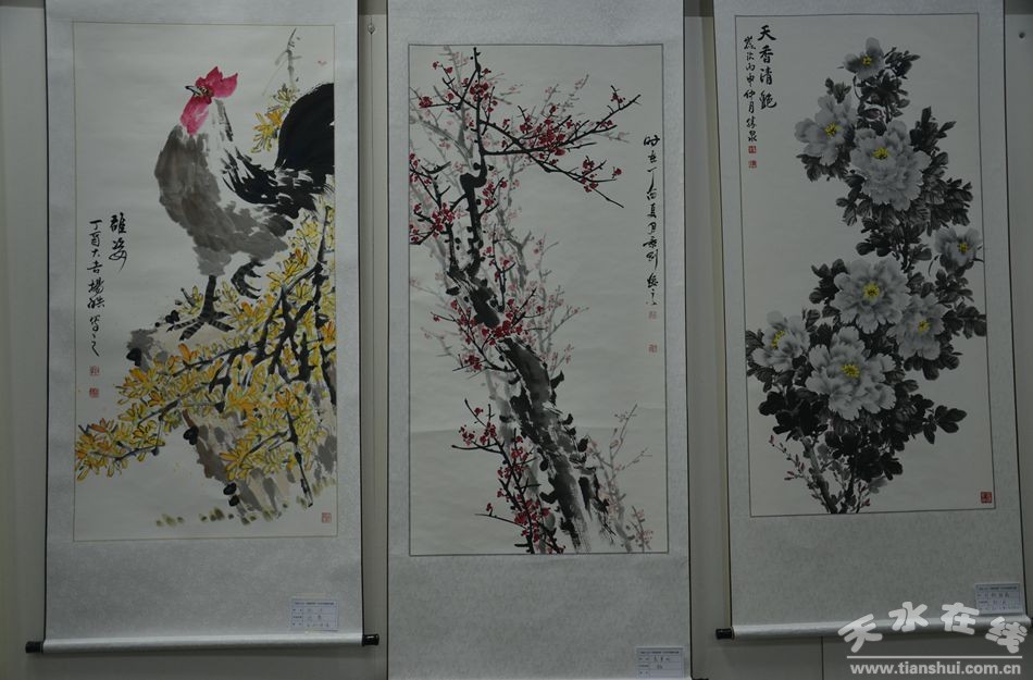 10月18日,適逢黨的十九大勝利召開之日,由天水市文聯(lián)主辦,市美協(xié)承辦,天水市華夏藝術(shù)館協(xié)辦的“慶祝十九大,丹青頌華章”天水市中國(guó)畫作品展在金龍大酒店三樓中國(guó)美協(xié)創(chuàng)作基地開展。市委常委、宣傳部長(zhǎng)蒲軍,市人大常委會(huì)副主任蒲朝暉、蘇定武,市人大常委會(huì)原副主任鄧炎喜,市政府副秘書長(zhǎng)、辦公室主任王永祥,市文化和旅游局局長(zhǎng)仙松濤,市文聯(lián)主席王進(jìn)文,天水師范學(xué)院美術(shù)學(xué)院院長(zhǎng)、天水市美協(xié)主席賈利珠,金龍大酒店董事長(zhǎng)、中國(guó)美協(xié)天水創(chuàng)作基地主任趙萬順等出席開幕式。