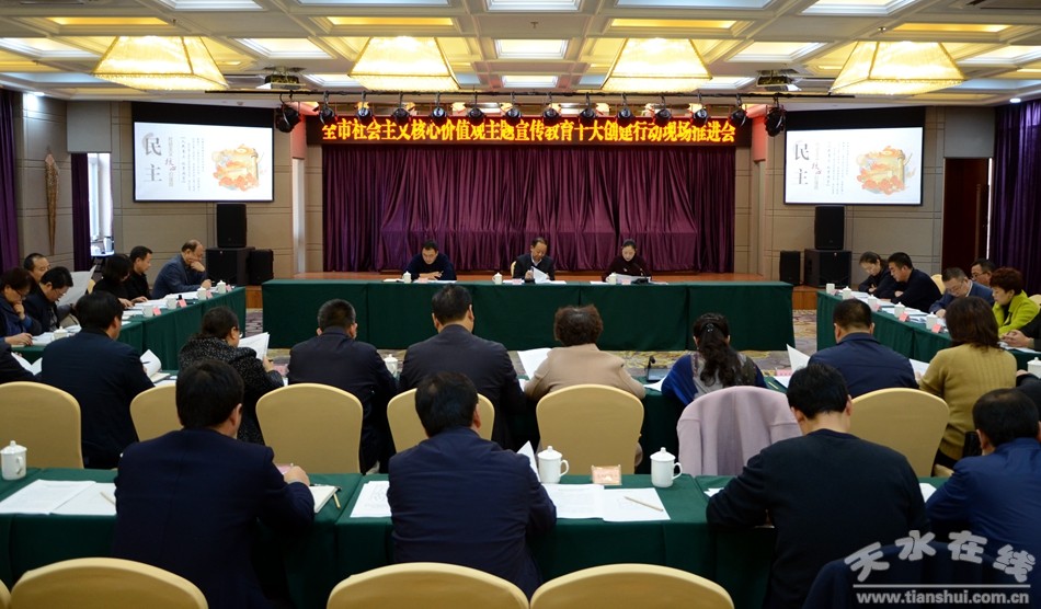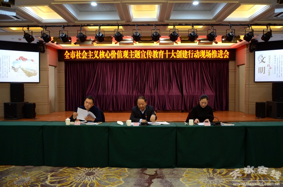 10月25日,在黨的十九大勝利閉幕之際,全市社會(huì)主義核心價(jià)值觀主題宣傳教育十大創(chuàng)建行動(dòng)現(xiàn)場(chǎng)會(huì)在麥積區(qū)召開。會(huì)上,學(xué)習(xí)宣傳黨的十九大精神,認(rèn)真貫徹落實(shí)全省社會(huì)主義核心價(jià)值觀主題宣傳教育十大創(chuàng)建行動(dòng)現(xiàn)場(chǎng)會(huì)議精神,安排部署我市持續(xù)開展社會(huì)主義核心價(jià)值觀主題宣傳教育十大創(chuàng)建行動(dòng),推動(dòng)全市社會(huì)主義核心價(jià)值觀培育實(shí)踐工作不斷向廣度和深度拓展。