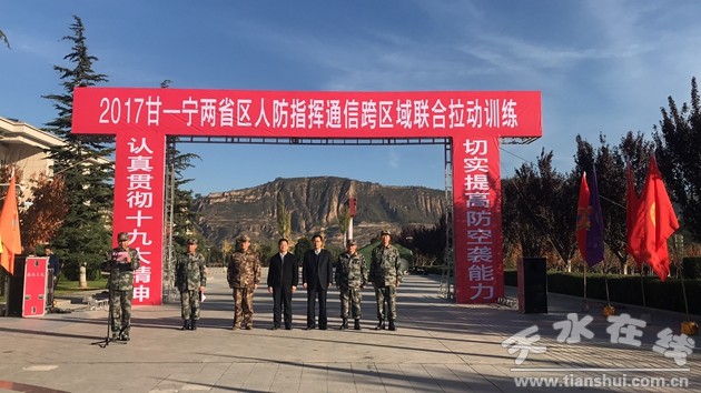 在中國共產(chǎn)黨第十九次全國代表大會勝利閉幕、全國上下深入學(xué)習(xí)貫徹“十九大”精神之際,為認(rèn)真貫徹落實《人民防空訓(xùn)練與考核大綱》,切實提高人防機動指揮所跨區(qū)域支援和應(yīng)急保障能力,探索人防跨區(qū)域相互支援和組織協(xié)同的有效機制,以實際行動貫徹落實“十九大”精神和第七次全國人民防空會議精神,甘肅、寧夏兩省區(qū)人防部門按照中央軍委提出的“守規(guī)矩、打勝仗”新時期戰(zhàn)略方針要求,經(jīng)過周密計劃和認(rèn)真籌備,于11月1日在平?jīng)鍪嗅轻紖^(qū)舉行“2017甘-寧兩省區(qū)人防指揮通信跨區(qū)域聯(lián)合拉動訓(xùn)練”開訓(xùn)儀式,平?jīng)鍪姓笔虚L向君,平?jīng)鲕姺謪^(qū)動員處處長李棟,平?jīng)鍪姓泵貢L、外僑辦主任吳宗,寧夏回族自治區(qū)人民防空辦公室指通處處長王銀森,寧夏回族自治區(qū)人民防空辦公室信息保障中心主任周貴強,甘肅省人民防空辦公室信息保障中心主任周新民等出席開訓(xùn)儀式。