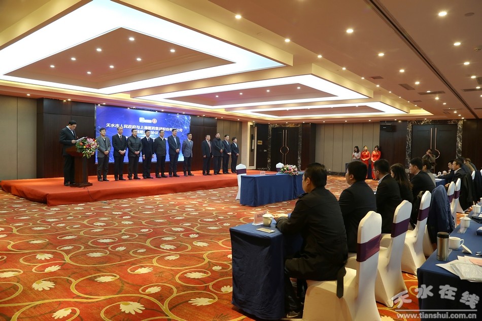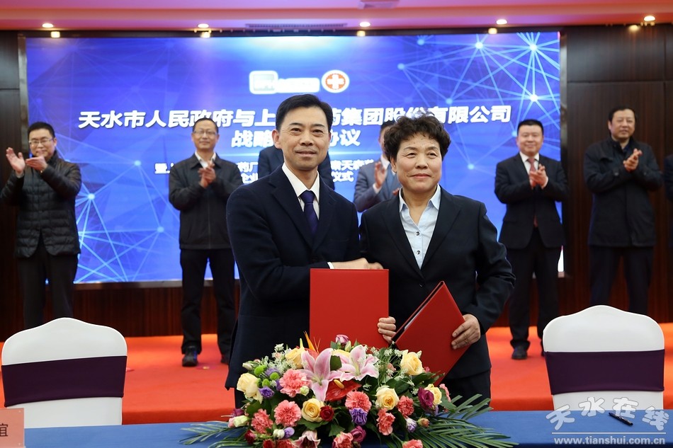 天水市委副書記、市長王軍,甘肅省工信委副主任高東生,天水市政府秘書長王祥林出席簽約儀式。天水市委常委、常務(wù)副市長趙衛(wèi)東主持簽約儀式。天水市副市長郝文杰與上海醫(yī)藥集團副總裁、上藥信誼公司總經(jīng)理顧浩亮分別代表雙方簽訂《天水市政府與上海醫(yī)藥公司戰(zhàn)略合作協(xié)議》。