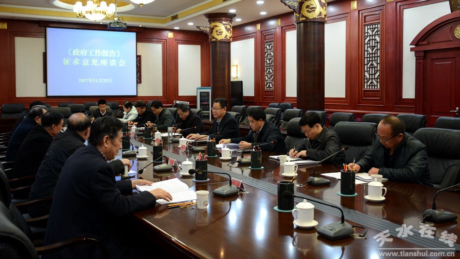 11月29日上午,天水市副市長張建杰主持召開《政府工作報告》征求意見座談會,就《政府工作報告》(征求意見稿)聽取部分老干部的意見建議。