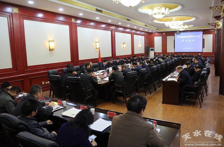 會(huì)議傳達(dá)學(xué)習(xí)了汪洋同志關(guān)于甘肅脫貧攻堅(jiān)工作的重要講話精神和省脫貧攻堅(jiān)領(lǐng)導(dǎo)小組會(huì)議精神,審定了麥積、秦安、張家川3個(gè)深度貧困縣區(qū)脫貧攻堅(jiān)實(shí)施方案,聽(tīng)取了今年全市脫貧驗(yàn)收情況匯報(bào)和有關(guān)部門發(fā)言。