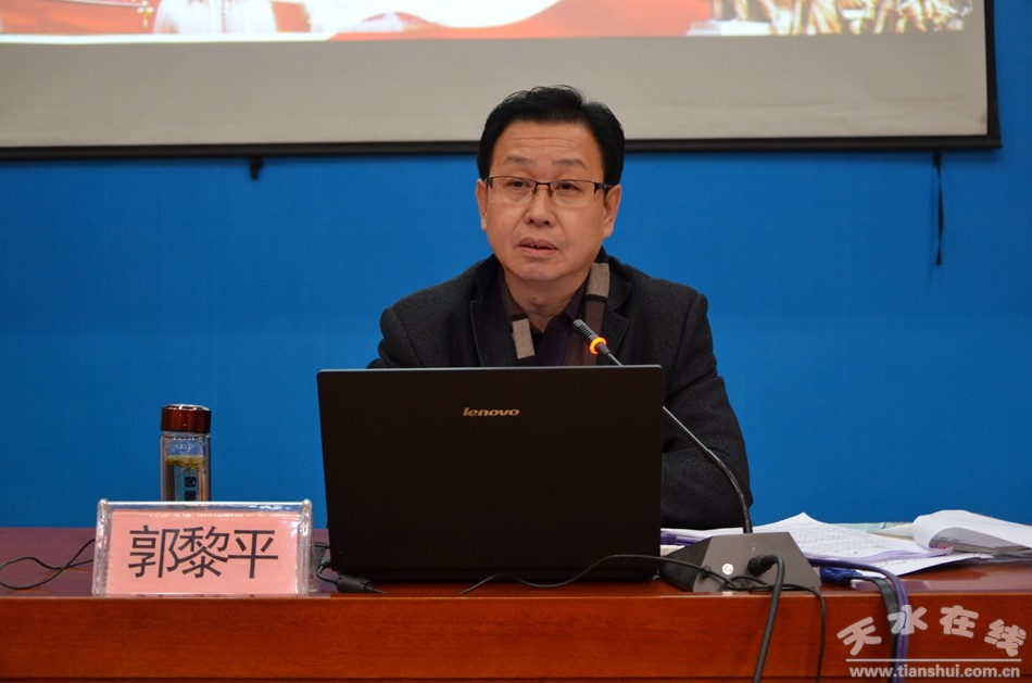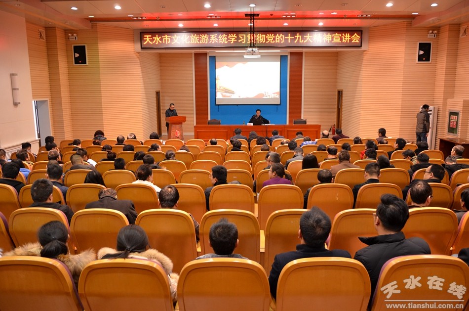 為了更好地學(xué)習(xí)貫徹黨的十九大精神,按照市委宣傳部、市委講師團(tuán)《關(guān)于組織開展黨的十九大精神宣講工作的通知》精神,12月15日,天水市文化和旅游局邀請到了市委講師團(tuán)團(tuán)長郭黎平同志,在市圖書館學(xué)術(shù)報告廳舉行天水市文化旅游系統(tǒng)學(xué)習(xí)貫徹黨的十九大精神宣講會,這是市文化旅游系統(tǒng)學(xué)習(xí)貫徹落實十九大精神的一次重要活動。市文化和旅游局黨組成員、調(diào)研員、副調(diào)研員,機關(guān)各科室、局屬各單位黨員干部、職工,共計150余人參加大會。