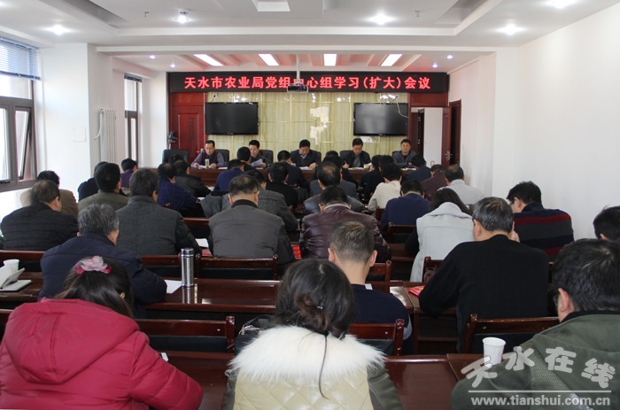12月19日,天水市農(nóng)業(yè)局黨組召開中心組學(xué)習(xí)(擴(kuò)大)會議,傳達(dá)學(xué)習(xí)習(xí)近平總書記關(guān)于進(jìn)一步糾正“四風(fēng)”、加強(qiáng)作風(fēng)建設(shè)的重要批示,習(xí)近平總書記在深度貧困地區(qū)脫貧攻堅座談會上的講話精神及市委書記王銳在市委常委會肅清王三運流毒和影響專題民主生活會上的講話精神。局黨組成員,機(jī)關(guān)全體黨員干部,局屬各單位副科級以上干部參加了會議。