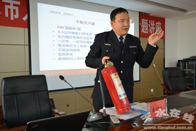 為增強(qiáng)全體干部職工的消防安全意識(shí),掌握消防安全技能,切實(shí)防范火災(zāi)事故的發(fā)生,近日,天水市人防辦邀請(qǐng)?zhí)m州政安消防知識(shí)宣教培訓(xùn)中心的李淵教官為干部職工進(jìn)行了消防安全知識(shí)專題講座。