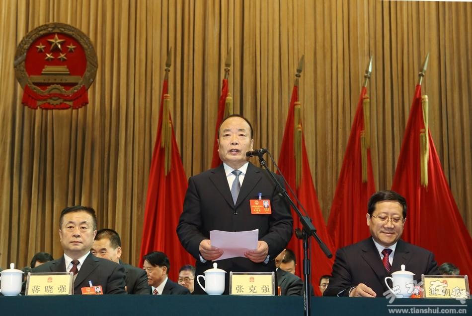(天水市人民政府市長王軍在代表市人民政府向大會報告工作。)