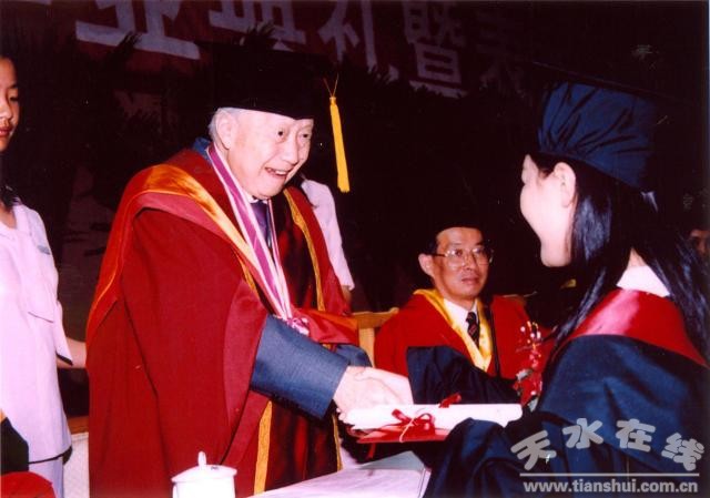 (2002.06)上海大學(xué)校長(zhǎng)錢偉長(zhǎng)出席畢業(yè)典禮,并為上海市優(yōu)秀畢業(yè)生頒發(fā)證書