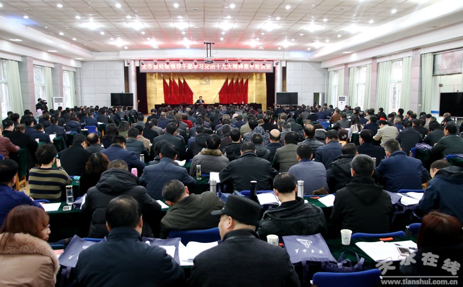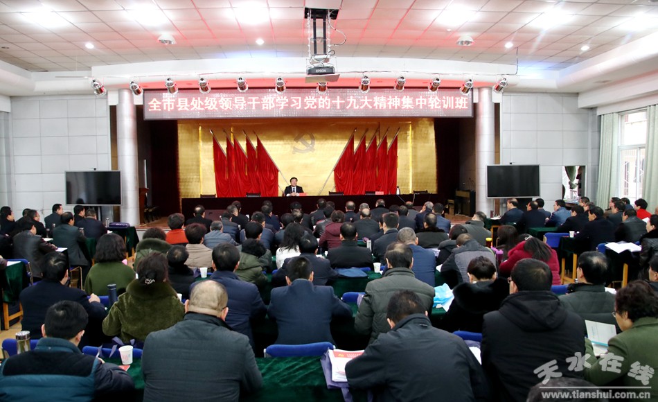 1月23日,天水市委常委、副市長(zhǎng)李曉東在全市縣處級(jí)領(lǐng)導(dǎo)干部學(xué)習(xí)貫徹黨的十九大精神輪訓(xùn)班上為全體學(xué)員作了十九大精神專題輔導(dǎo)報(bào)告。