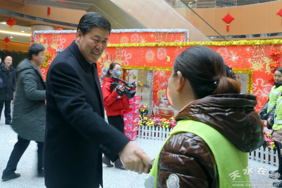 2月12日,天水市委副書(shū)記、市長(zhǎng)王軍來(lái)到部分市政單位,看望慰問(wèn)堅(jiān)守在一線崗位的干部職工,通過(guò)他們向全市廣大勞動(dòng)者致以美好祝福和新春?jiǎn)柡。市委常委、秦州區(qū)委書(shū)記雷鳴,副市長(zhǎng)何東,市政府秘書(shū)長(zhǎng)王祥林參加慰問(wèn)活動(dòng)。