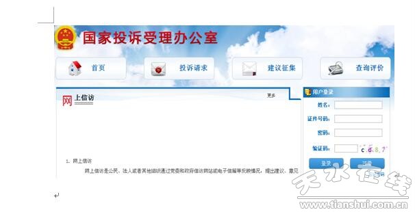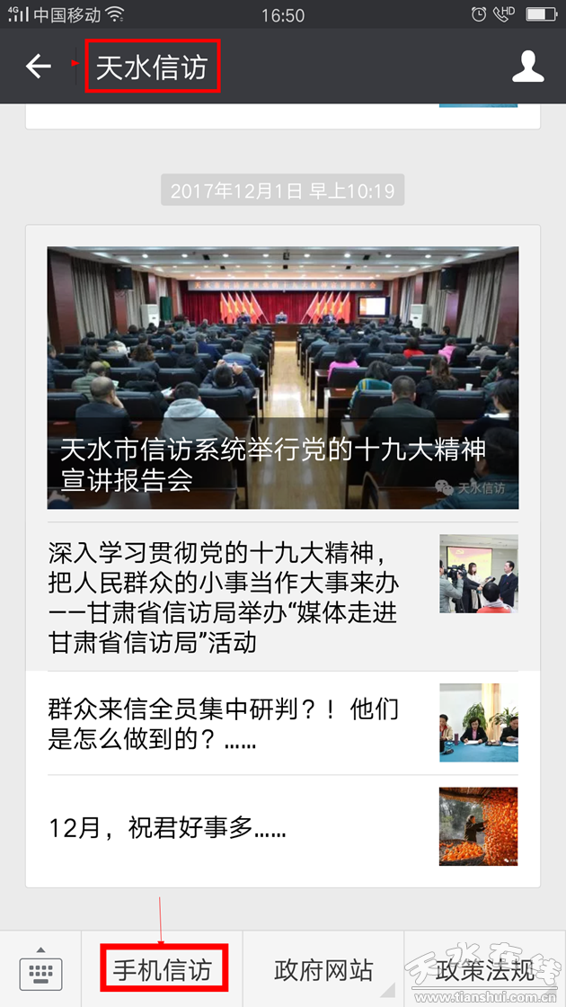 或關(guān)注“天水信訪”微信公眾號,在“網(wǎng)上信訪”欄目欄目實名注冊,反映訴求。