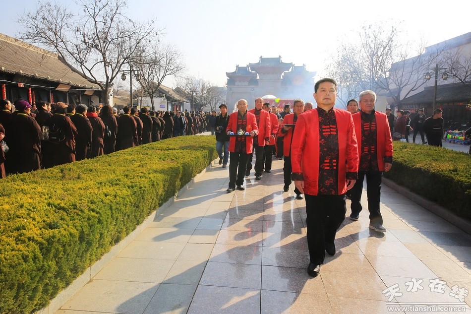 2月28(農(nóng)歷正月十三)日上午8點30分,天水伏羲廟門前旗幡飄揚,人頭攢動,“澤被華夏——戊戌(2018)年天水伏羲廟春祭伏羲典禮”正式拉開序幕。恭迎圣水儀式在伏羲廟隆重舉行,聲勢浩大的儀仗隊伍和近萬名群眾參加了儀式。