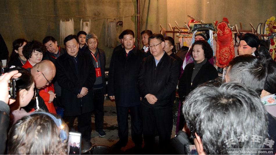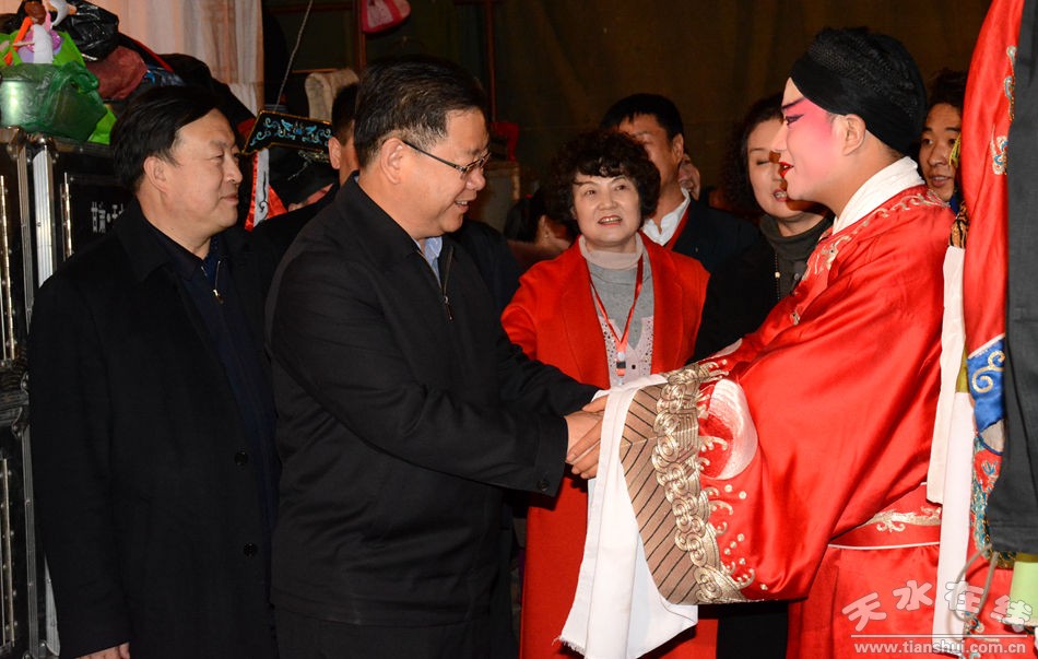 3月2日晚,天水市副市長(zhǎng)張建杰帶領(lǐng)市文化和旅游局等部門負(fù)責(zé)人,到伏羲廣場(chǎng)看望慰問(wèn)正在參加秦腔戲曲公演的市西秦腔研究院全體演職人員。