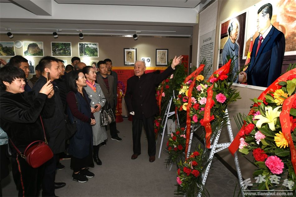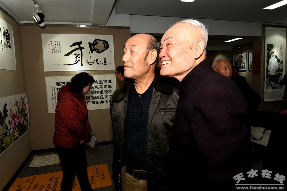天水市人大常委會副主任安志宏、天水市黨外知識分子聯(lián)誼會會長蕭菡、天水市編辦主任仙松濤、麥積區(qū)人大常委會主任賈應珍、天水市社會組織黨委書記郭治寧、天水市美術(shù)家協(xié)會主席賈利珠等出席開幕式并和天水社會各界人士、書畫愛好者1500余人一同參觀書畫展。