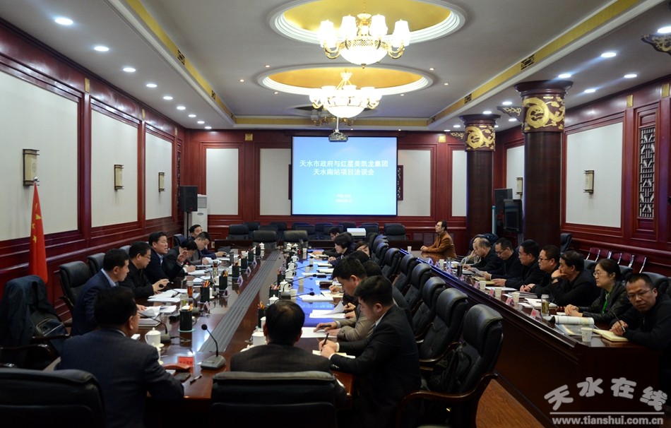 3月21日,天水市政府與紅星美凱龍家居集團舉行項目洽談會,雙方就天水南站綜合交通樞紐及站前廣場項目合作事宜進行了洽談交流。市委副書記、市長王軍主持會議并講話。