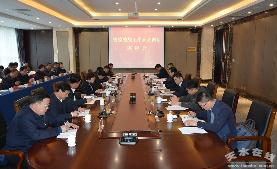調(diào)研期間,馬廷禮一行先后來到“和雨東”社會矛盾化解室、岐黃藥業(yè)有限公司、天水在線網(wǎng)站等處了解掌握城市民族工作、非公有制經(jīng)濟(jì)發(fā)展和新的社會階層人士統(tǒng)戰(zhàn)工作情況,并與統(tǒng)戰(zhàn)工作領(lǐng)導(dǎo)小組成員單位、縣區(qū)統(tǒng)戰(zhàn)部門負(fù)責(zé)同志座談交流。