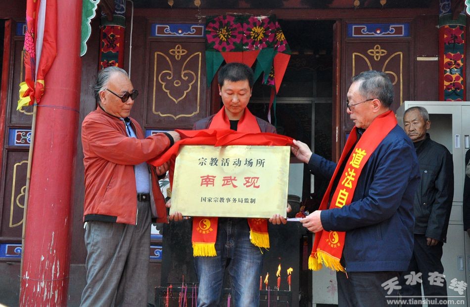 現(xiàn)占地面積30多畝的南武觀,于1992年開始由幾位鄉(xiāng)賢發(fā)起募捐修復(fù),然后受到七里墩、十里鋪、曹家梗、張家溝、羅玉溝、巷口村等十八村民大力支持,齊心協(xié)力籌資,先后建起仿明古建筑真武大殿、三宵殿、財(cái)神殿、方神殿、山神土地殿、山門、文昌殿、寺廟、戲樓、工作室等13殿30多間,雕塑神像27尊,大型壁畫39幅。成為秦州城東大門知名道觀圣地,旅游和觀景者絡(luò)繹不絕,每年三月三日廟會熱鬧非凡。