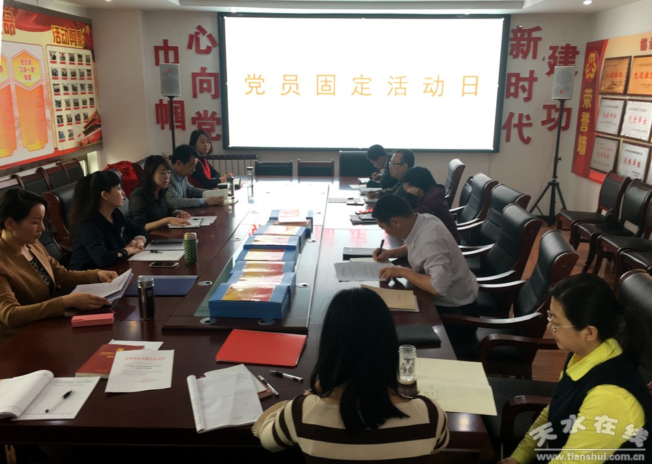 此次“黨員固定活動日”活動以“加強紀(jì)律性,做優(yōu)秀合格的共產(chǎn)黨員”為主題,下發(fā)了《天水市婦聯(lián)2018年黨支部工作要點》,組織學(xué)習(xí)了省政府《關(guān)于進一步轉(zhuǎn)變政府工作作風(fēng)的“十不準(zhǔn)”規(guī)定》,觀看了中紀(jì)委大型專題片《永遠(yuǎn)在路上》第五集《把紀(jì)律挺在前面》,與會黨員現(xiàn)場繳納了黨費。