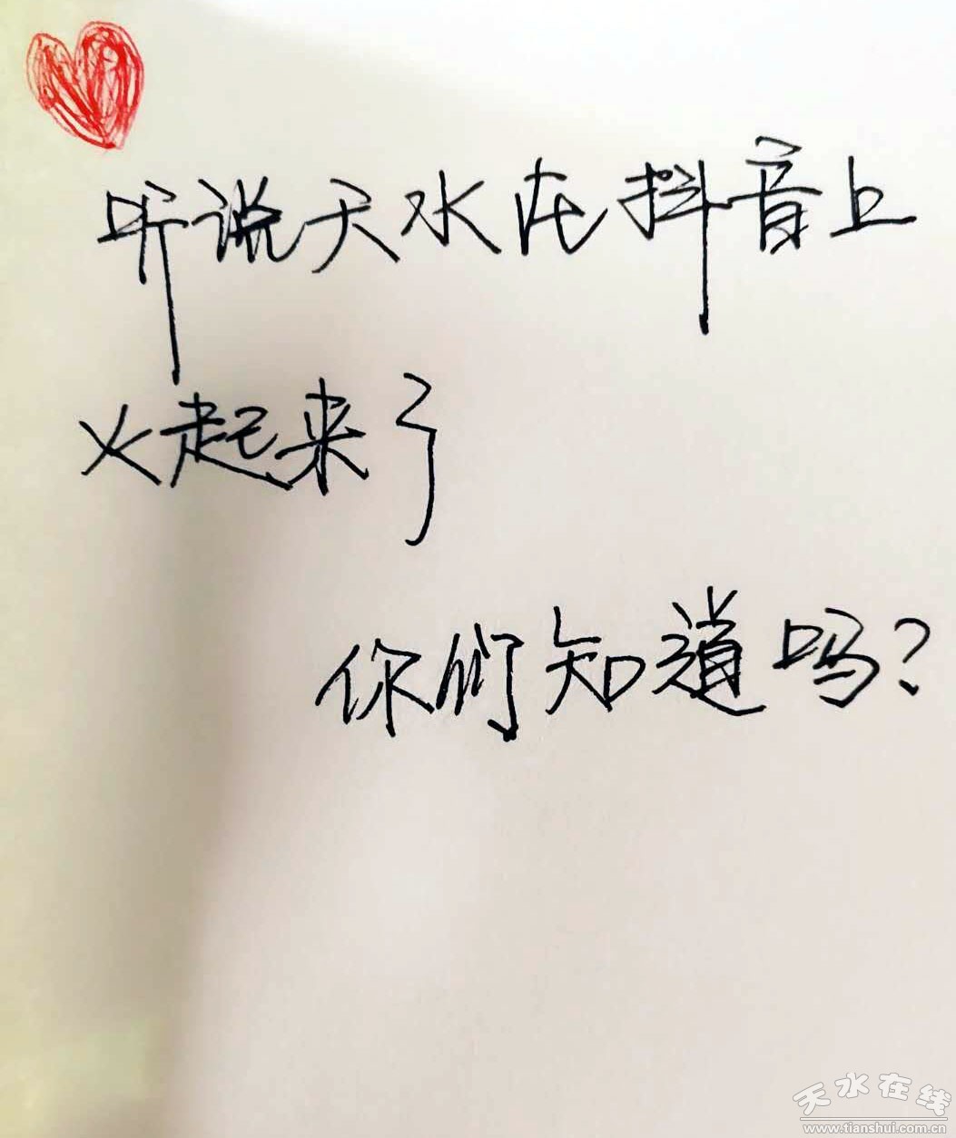 各位天水的網友和熱愛天水的“抖友”朋友們:敬請關注天水在線官方抖音號(ID:tszx),點贊、轉發(fā)小視頻,同時拍攝同款天水在線原創(chuàng)的抖音小視頻,讓擁有八千年文明,2700多年建城史的羲皇故里·隴上江南——古城天水,也跟上時代的步伐“抖”起來。我們承諾:天水不火,絕不收兵! |