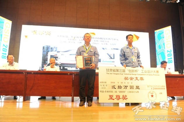 在甘肅省第三屆“創(chuàng)新杯”工業(yè)設(shè)計大賽頒獎儀式上,天水市人民政府獲得優(yōu)秀組織獎;天水鍛壓機床(集團)有限公司基于鈑金機器人操作的伺服泵控折彎單元獲得最高唯一獎項——“至尊獎”;天水星火機床有限責任公司ZH500高速加工中心、天水電氣傳動研究所有限責任公司石油鉆機智能化電控系統(tǒng)高端裝置ZJ70DB VFD、甘肅機電職業(yè)技術(shù)學(xué)院海浪能動力船分別獲得產(chǎn)品設(shè)計金獎;天水飛天雕漆工藝家俱有限責任公司國色芳馨貝雕孔雀、天水二一三電器有限公司GSC5系列智能接觸器分別獲得產(chǎn)品設(shè)計銀獎;甘肅福雨塑業(yè)有限責任公司PE吹塑機組全自動表面摩擦收卷機、甘肅春風(fēng)紡織(集團)有限責任公司高支牦牛絨系列圍巾、甘肅工業(yè)職業(yè)技術(shù)學(xué)院機械式花椒采摘器分別獲得產(chǎn)品設(shè)計銅獎;武山縣瑰寶玉器開發(fā)有限公司神韻麥積山、甘肅海林中科科技股份有限公司513124輪轂軸承單元、天水風(fēng)動機械股份有限公司YYGJ145B型液壓鑿巖機、甘肅長城電工電器工程研究院有限公司EVS1P-12系列戶內(nèi)高壓交流真空斷路器、天水新天絲毯有限公司文殊菩薩、甘肅清麥慧谷創(chuàng)新科技有限公司工業(yè)桁架一體機、天水陸拾陸號文化創(chuàng)意有限公司八壽碟、天水飛天雕漆工藝家俱有限責任公司丹霞地貌天球瓶、天水大成隆源建筑新材料有限公司陟苑別墅、天水華圓制藥設(shè)備科技有限責任公司六輥大蜜丸制丸稱重剔除一體機、甘肅隴鼎建設(shè)工程(集團)有限責任公司裝配式快裝房、天水黃河雕漆工藝有限責任公司夜光螺雕嵌四扇掛屏梅、蘭、竹、菊、天水長城電力儀器設(shè)備有限公司SMN-1低壓開關(guān)柜觸頭夾緊力檢測儀、天水華洋電子科技股份有限公司QFN表面粗礦引線框架、甘肅機電職業(yè)技術(shù)學(xué)院開瓶器和組合刷分別獲得產(chǎn)品設(shè)計優(yōu)秀獎。
